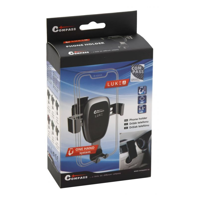 Držiak je opatrený gravitačným systémom uchytenia, kedy telefón svojou váhou pôsobí na spodné rameno držiaka, vďaka čomu sa stiahnu bočné ramená a telefón sa upevní. Umiestnenie telefónu tak hravo zvládnete aj jednou rukou. Telo držiaka je ďalej opatrené kĺbom s aretačným prstencom, vďaka ktorému je možné držiak nastaviť pre potrebný sledovací uhol a dotiahnutím zaistiť.