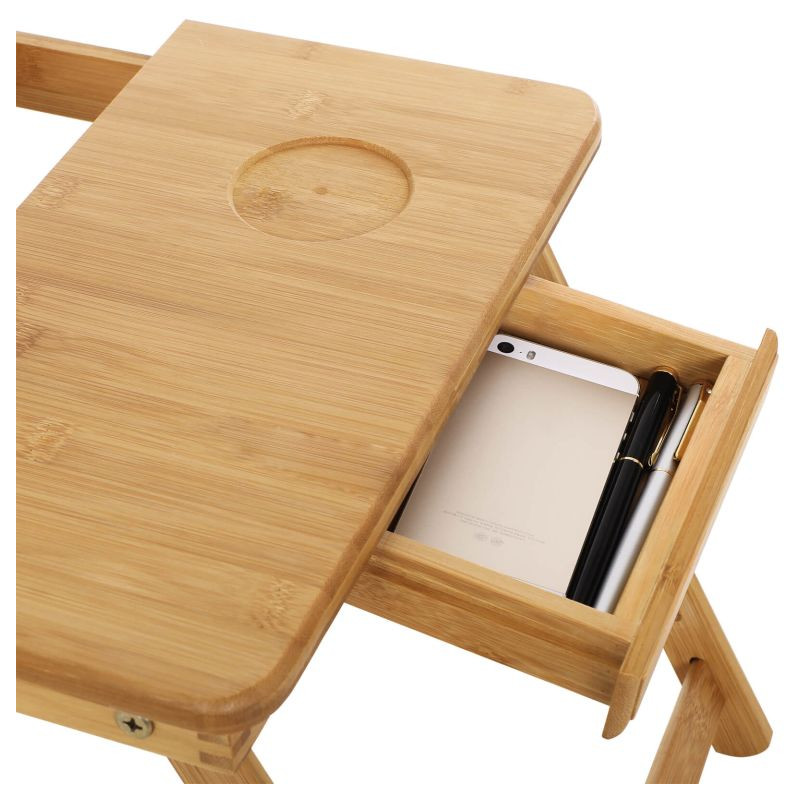 Stolík je vyrobený z pevného bambusu, má nastaviteľnú výšku a sklon dosky, čo umožňuje individuálne nastavenie. Jednoduchá montáž, jednoduchá údržba a skladnosť sú samozrejmosťou. Ideálna voľba pre modernú domácnosť.