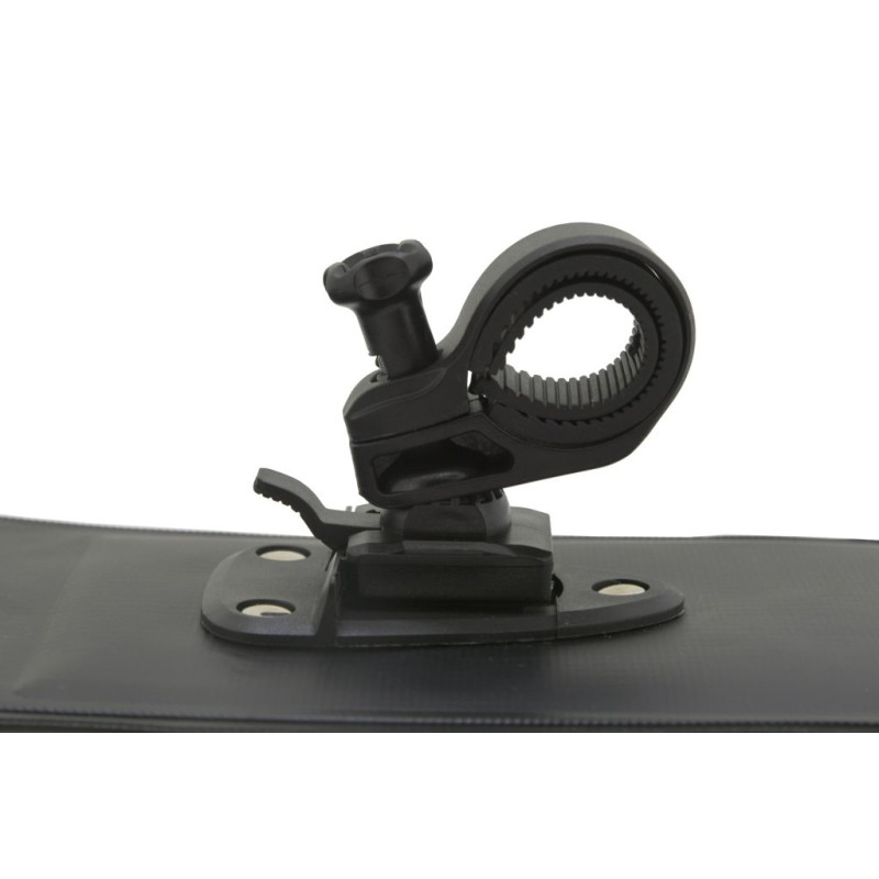 Upevnenie na riadidlá bicykla je riešené pomocou držiaka s protišmykovými páskami (na rúrku s priemerom max. 30 mm). Konštrukcia držiaka tiež umožňuje otáčanie a mierny náklon, čím je možné telefón zaistiť v požadovanej polohe.