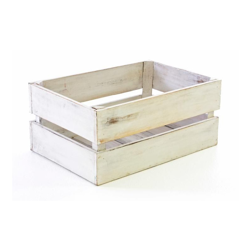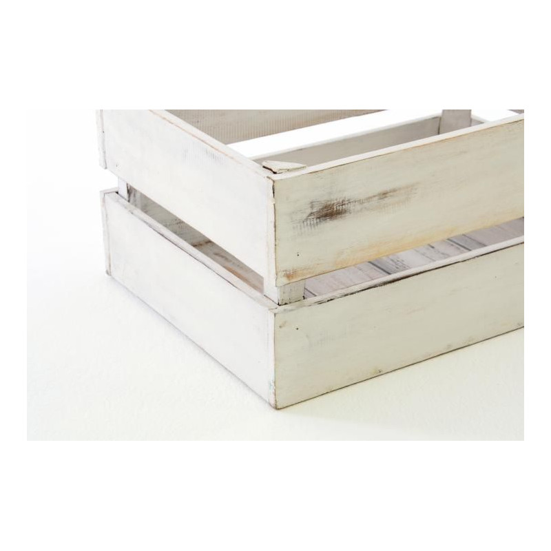 Drevená debna je natretá nabielo v ošumelom vzhľade - shaby chic. Je ručne vyrobená z dreva Albacia, takže je každá jedinečná a môže sa preto mierne líšiť veľkosťou a hmotnosťou.