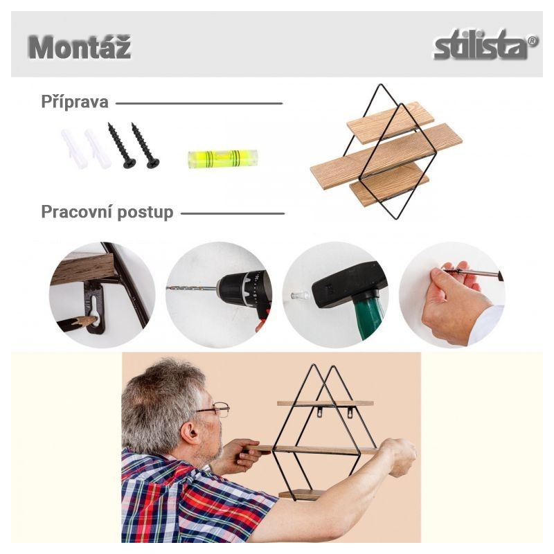 Nástenná dizajnová polička "karo" je testovaná drevovláknitá doska MDF podľa štandardnej dyhy E1. Kompletná polica je testovaná na škodlivé látky. Vďaka jednoduchému rámu možno závesnú policu dokonale kombinovať s ďalším nábytkom.