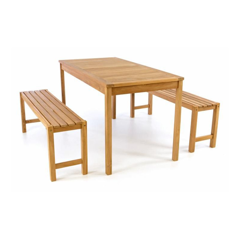 Záhradný set lavíc a stola DIVERO - ošetrené teakové drevo - 135 cm