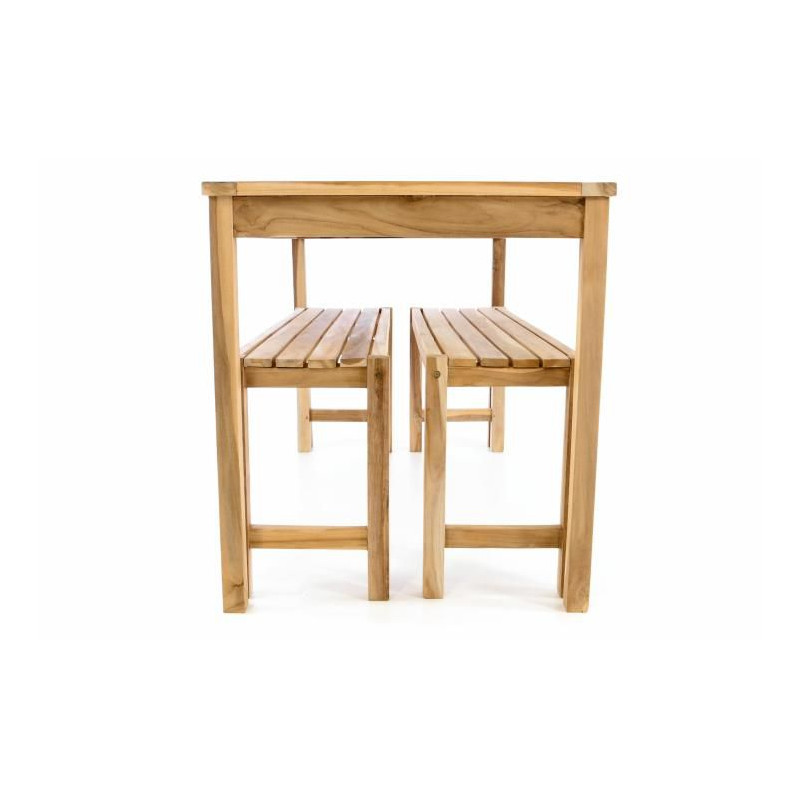 Krásna záhradná sedacia súprava je nielen dekoratívnou, ale aj praktickou ozdobou Vášho balkóna, terasy alebo záhrady. Hodí sa perfektne k pikniku vo voľnej prírode alebo k príjemne strávenému letnému večeru s rodinou, susedmi alebo priateľmi. Tiež v zimnej záhrade bude vyzerať táto zostava nádherne. Na laviciach môže pohodlne sedieť až 6 osôb. K úspore priestoru stačí pohodlne zasunúť lavice pod stôl.