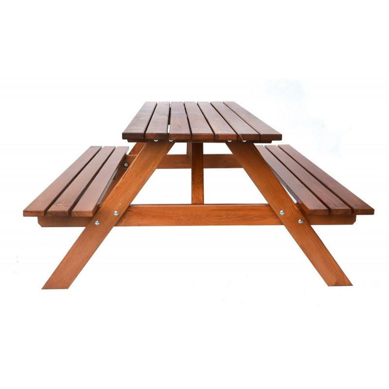 Záhradná zostava PIKNIK je zhotovená z kvalitného borovicového dreva. Drevo je lakované do gaštanovej farby. Zostava sa skladá zo stola a dvoch lavíc, ktoré sú pripojené k stolu. Certifikát FSC zákazníkom zaručuje, že drevo, z ktorého je výrobok zhotovený, je kvalitné a zdravé.