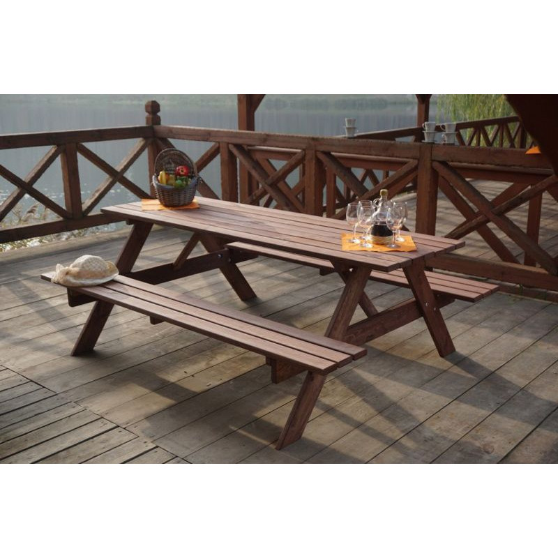 Záhradná zostava PIKNIK je zhotovená z kvalitného borovicového dreva. Drevo je impregnované do gaštanovej farby. Zostava sa skladá zo stola a dvoch lavíc, ktoré sú pripojené k stolu. Certifikát FSC zákazníkom zaručuje, že drevo, z ktorého je výrobok zhotovený, je kvalitné a zdravé.