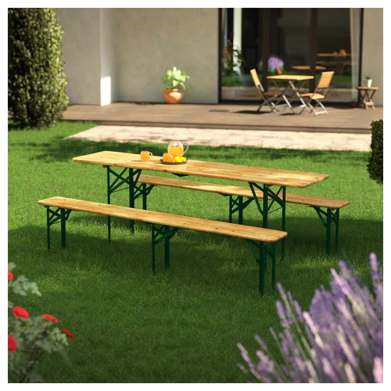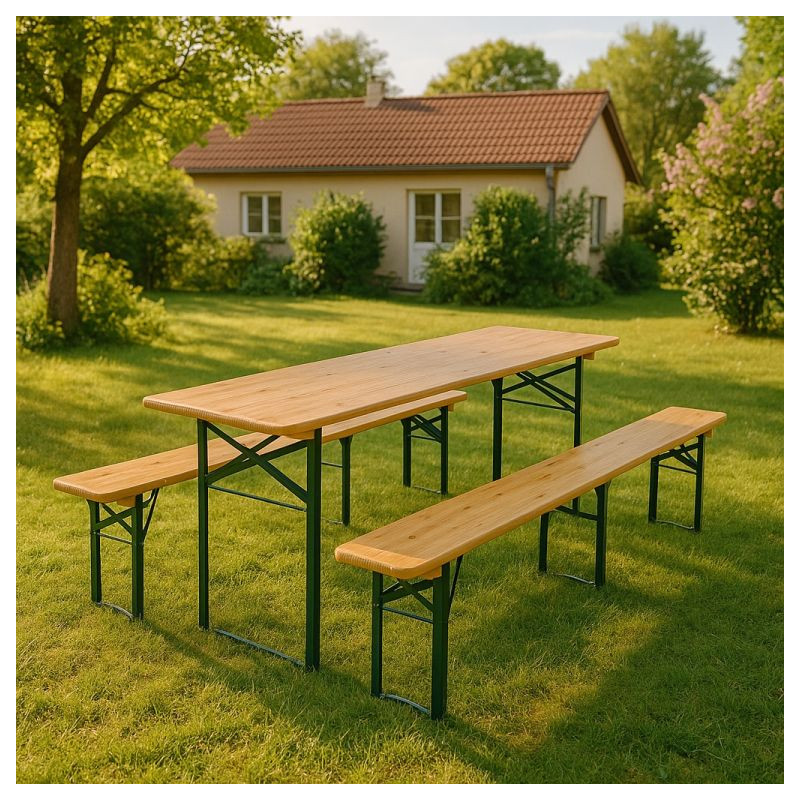 Užite si spoločné chvíle na záhrade aj doma s pivným setom. Tradičný drevený vzhľad a praktická skladacia konštrukcia robia z tohto setu ideálnu voľbu pre rodinné oslavy, grilovanie aj posedenie s priateľmi. Poskytne dostatok miesta až pre 8 osôb a vďaka odolnému spracovaniu vydrží aj časté používanie.