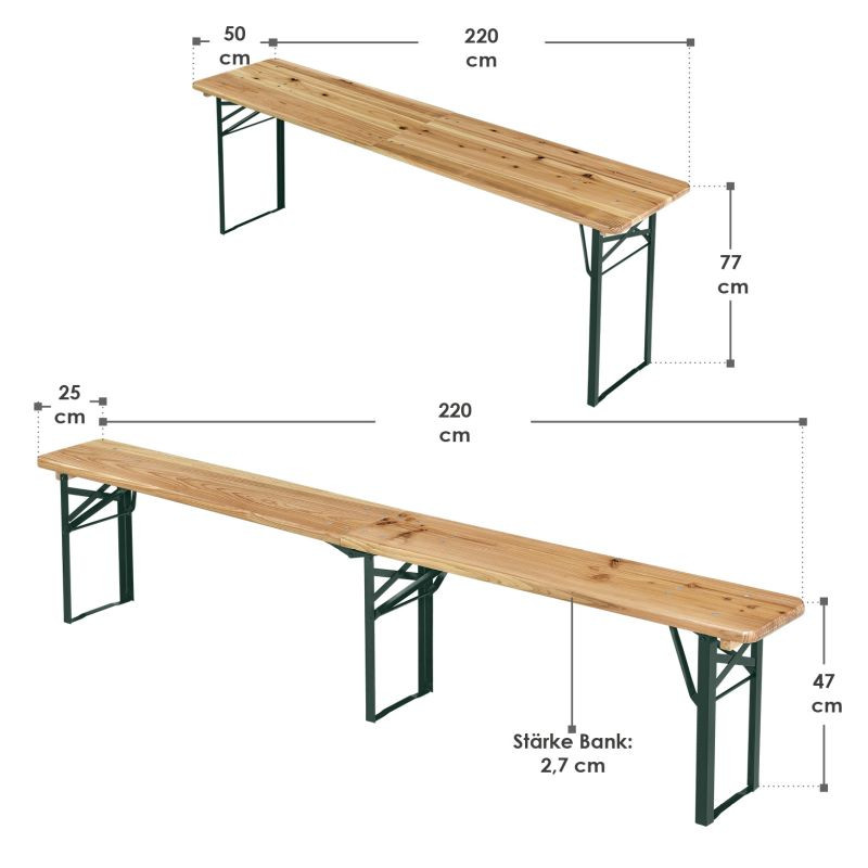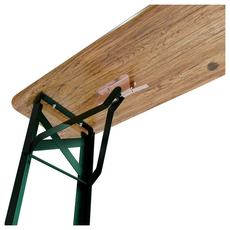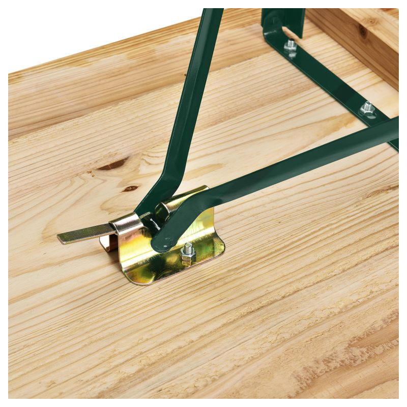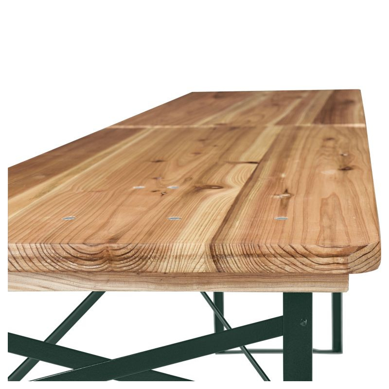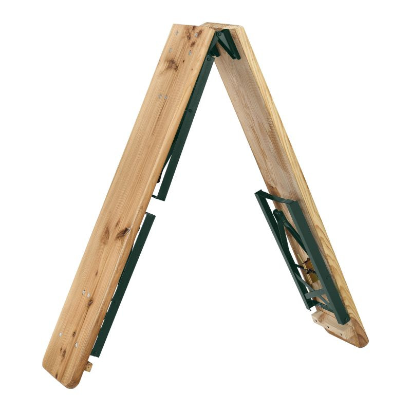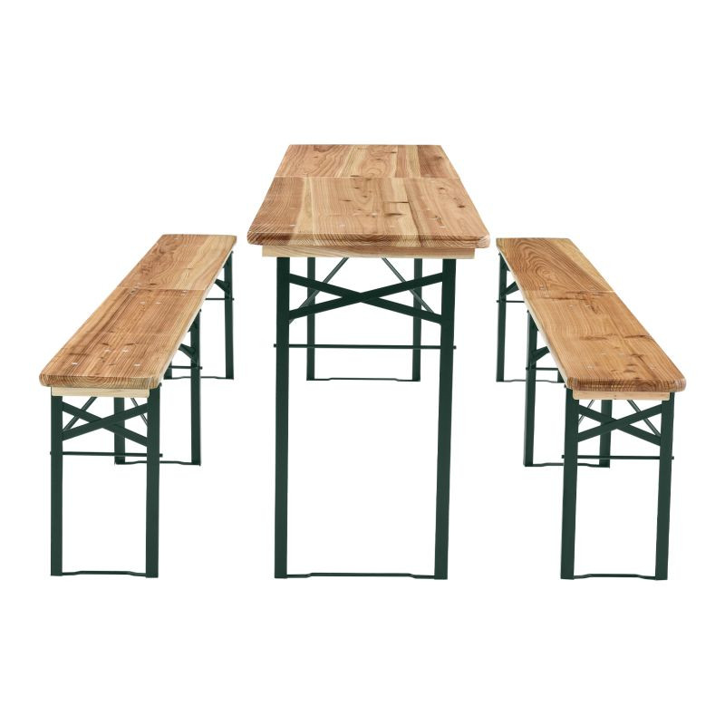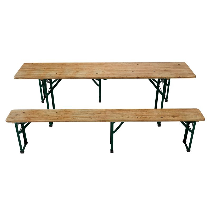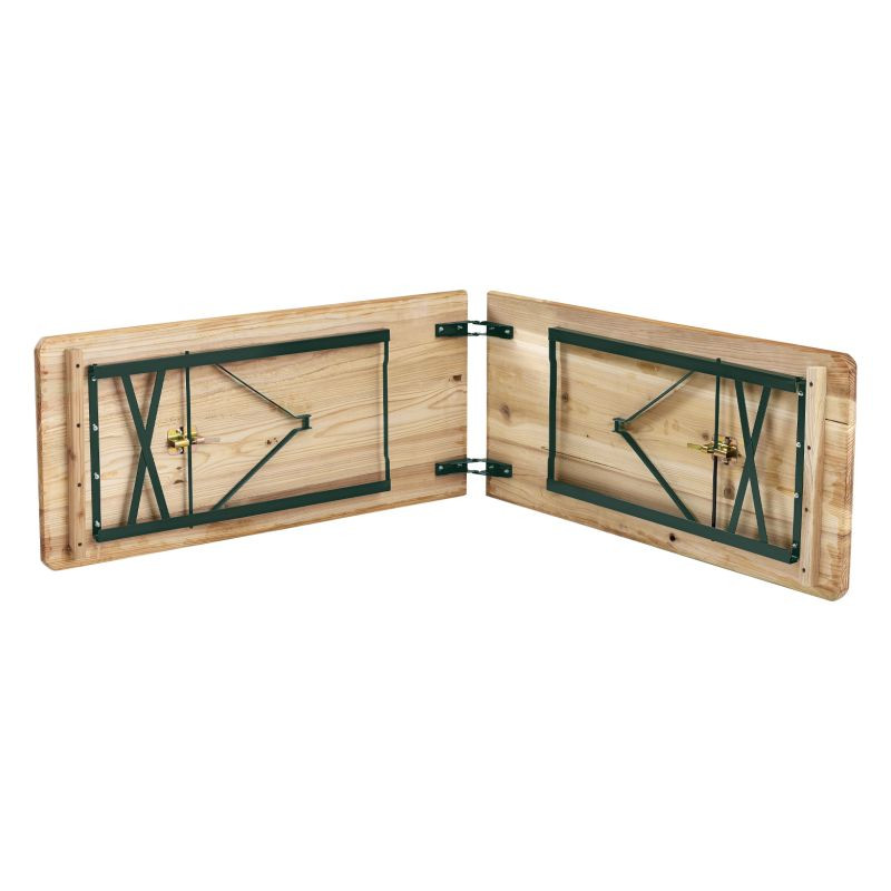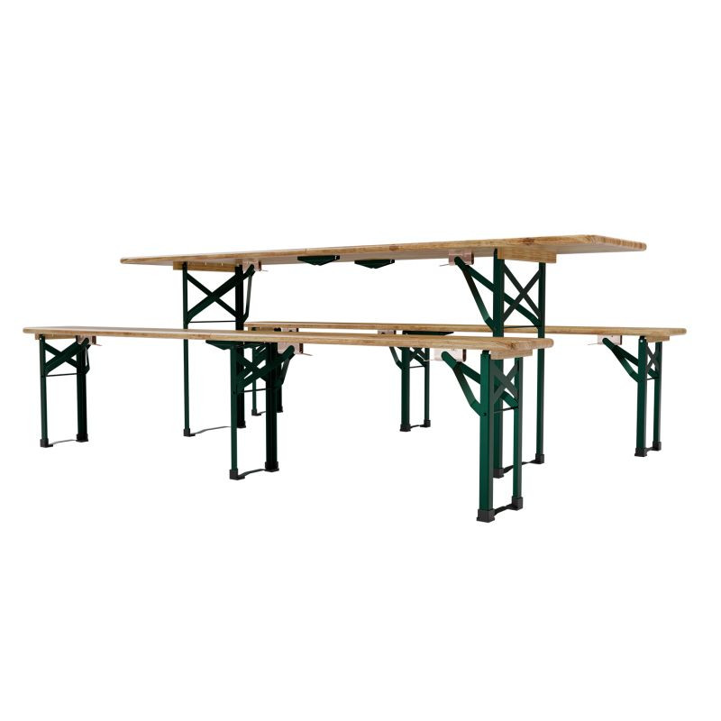 Stôl aj lavice sú vyrobené z lakovaného jedlového dreva a podoprené pevnou oceľovou konštrukciou. Lavice navyše dopĺňajú stredové nohy pre vyššiu stabilitu, vďaka ktorým unesú až 250 kg. Súčasťou balenia je 16 chráničov nôh proti poškodeniu podlahy. Celý set je možné jednoducho zložiť a uložiť, takže zaberie minimum miesta a ľahko sa prenáša.