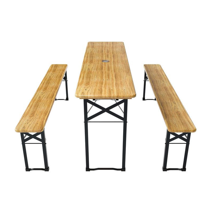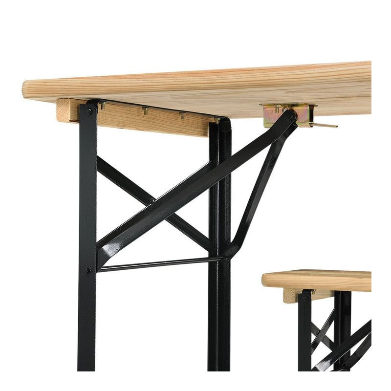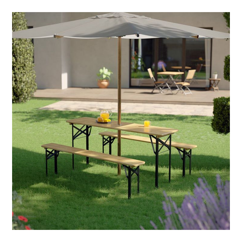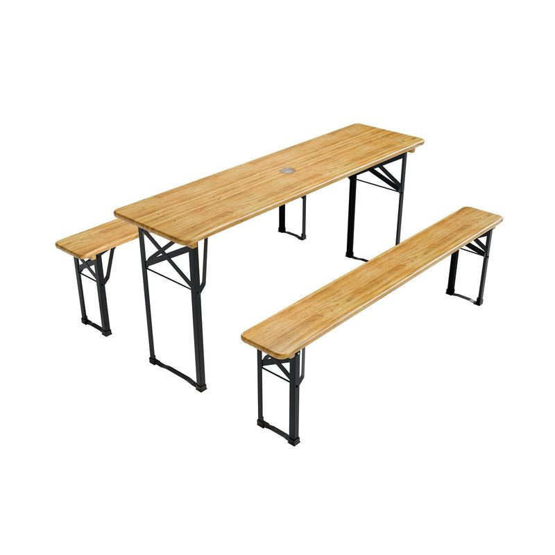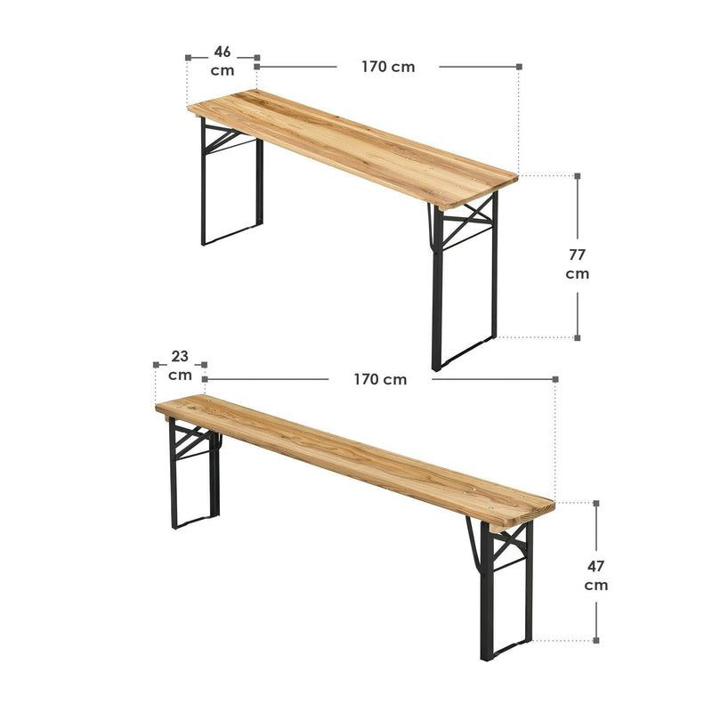 Pivný set je ideálnou voľbou pre každú záhradnú oslavu, grilovanie alebo posedenie s priateľmi. Prírodné čerešňové drevo a pevná kovová konštrukcia vytvára príjemnú atmosféru a ponúka dostatok priestoru pre všetkých hostí. Vďaka jednoduchému skladaciemu mechanizmu ho ľahko uložíte, keď ho práve nepotrebujete.