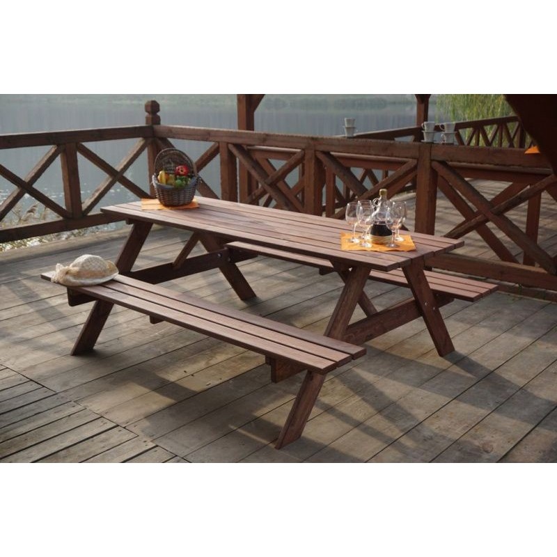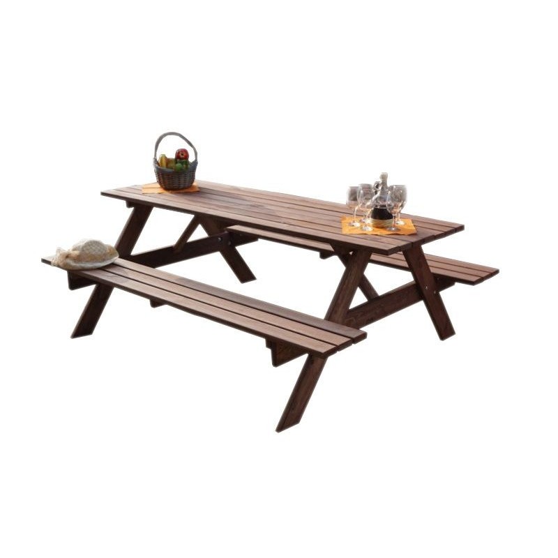 Zahradní sestava PIKNIK je zhotovena z kvalitního borovicového dřeva. Dřevo je impregnované do kaštanové barvy. Sestava se skládá ze stolu a dvou lavic, které jsou připojeny ke stolu. Certifikát FSC zákazníkům zaručuje, že dřevo, z něhož je výrobek zhotoven, je kvalitní a zdravé