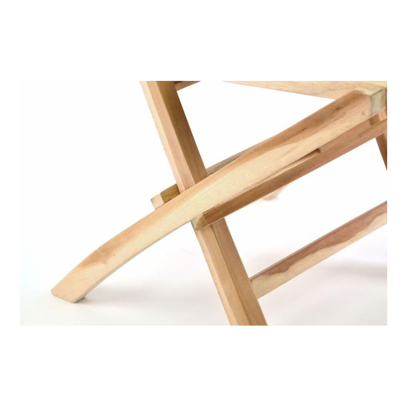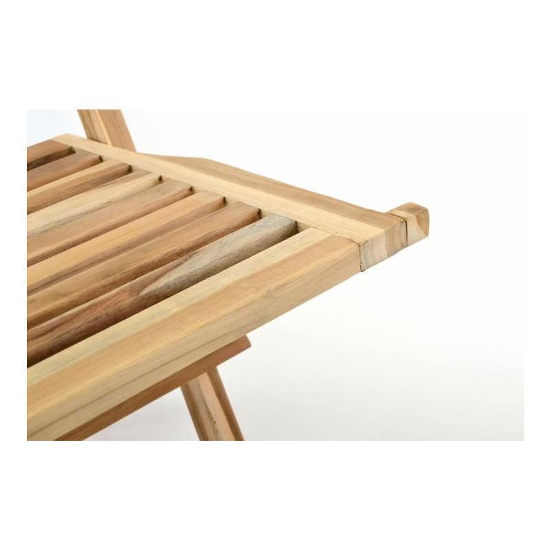 Masívna sklopná stolička z teakového dreva je perfektným riešením na malú terasu alebo balkón. Mávnutím ruky je postavená a vďaka zaobleným rohom a úzkym laťkám je pohodlná aj bez sedáka. Naša záhradná stolička je sklopná a umožňuje jednoduché a veľmi skladné uschovanie.