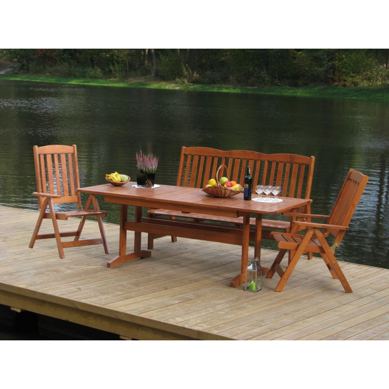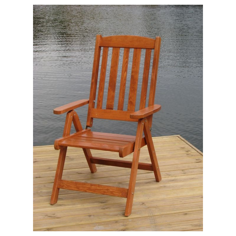 Polohovacie záhradné kreslo z lakovaného borovicového dreva. Vynikajúce spracovanie a použité spojovacie kovanie zaisťujú dlhú životnosť a funkčnosť kresla. FSC certifikácia - zaručuje kvalitu materiálu. Do setu je možné zakúpiť aj stôl a lavicu.