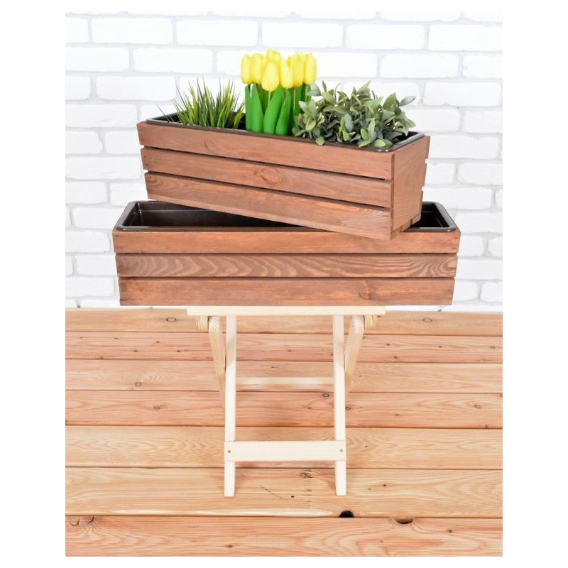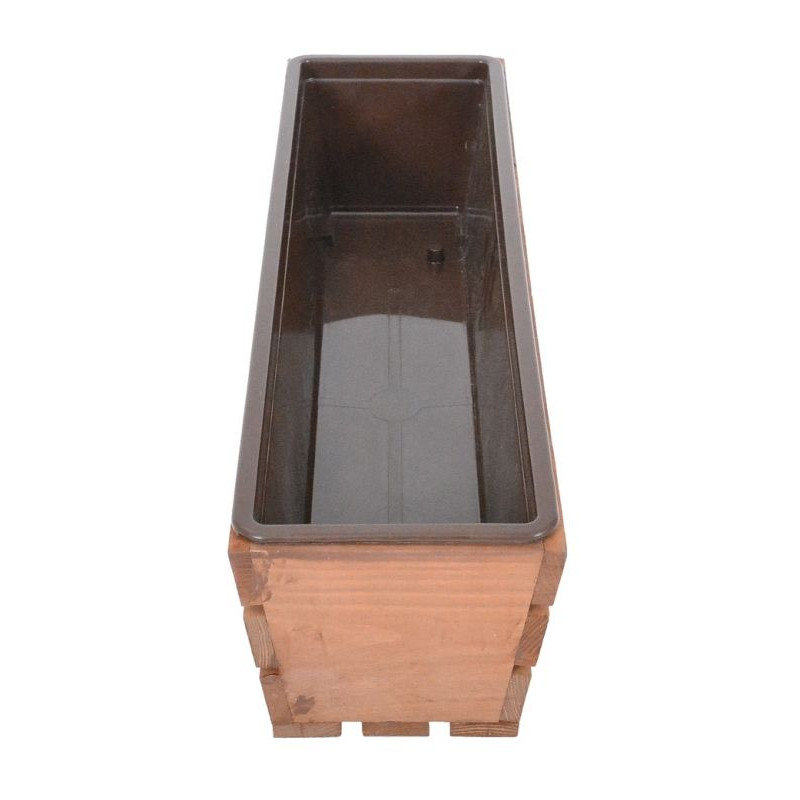 Vyrobený z borovicového dreva s FSC certifikátom, tento truhlík je odolný voči poveternostným vplyvom. Plastová vložka umožňuje jednoduchú výsadbu a údržbu. Rozmery 61x18x15 cm poskytujú dostatok priestoru pre vaše obľúbené kvety.