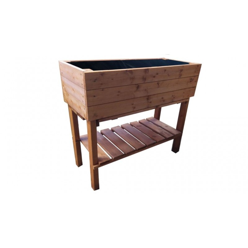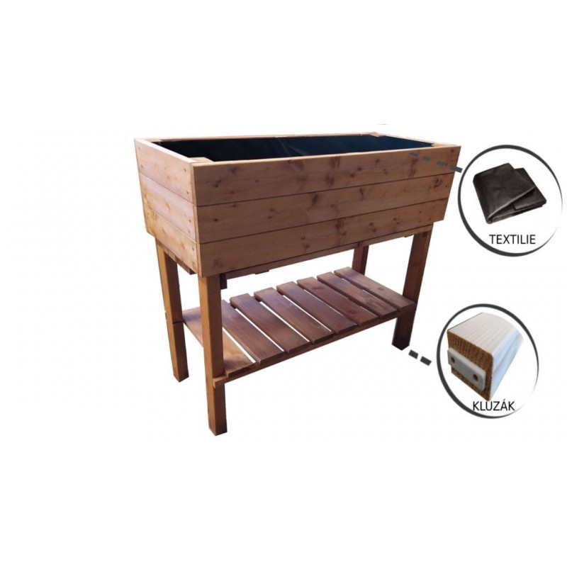 Radi pestujete, ale vždy Vás trápilo nepríjemné ohýbanie sa a kľačanie? S týmto záhonom Vám práca pôjde ľahšie a bez nepríjemného ohýbania alebo kľačania. Je vyrobený z 20 mm hrubého materiálu a nohy sú hrubé 40 x 60 mm. Police na uloženie náradia na pestovanie a sadbu. Geotextília je súčasť balenia produktu a slúži na oddelenie zeminy od záhona. Zo spoda má záhon plastové klznice pre lepšiu stabilitu a aby drevené nohy neboli v kontakte so zemou.