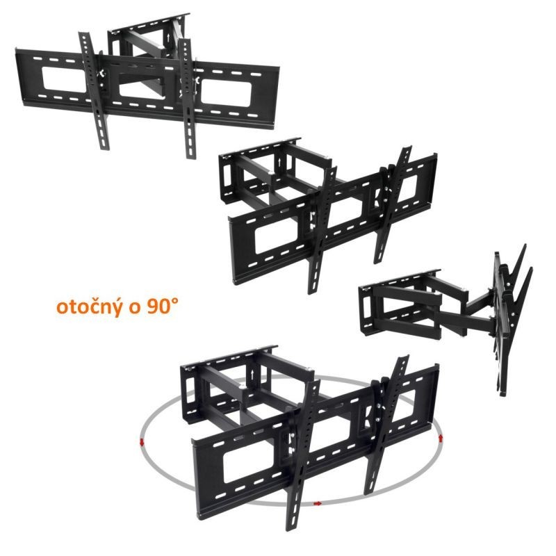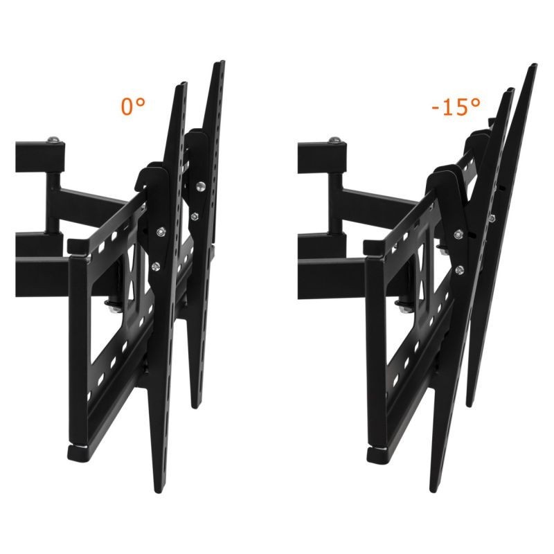 Tento nástenný držiak je vhodný pre všetky ploché TV s uhlopriečkou 26" až 66", teda 66 - 167,6 cm. Maximálne zaťaženie je 100 kg, držiak je možné sklopiť smerom dole až o 15°. Vďaka výkyvným ramenám môžete oddialiť televízor od steny až na 52 cm. Vďaka výklopným uhlom môžete televíziu umiestniť pokojne do rohu miestnosti, držiak je možné pootočiť do strán o 45°.