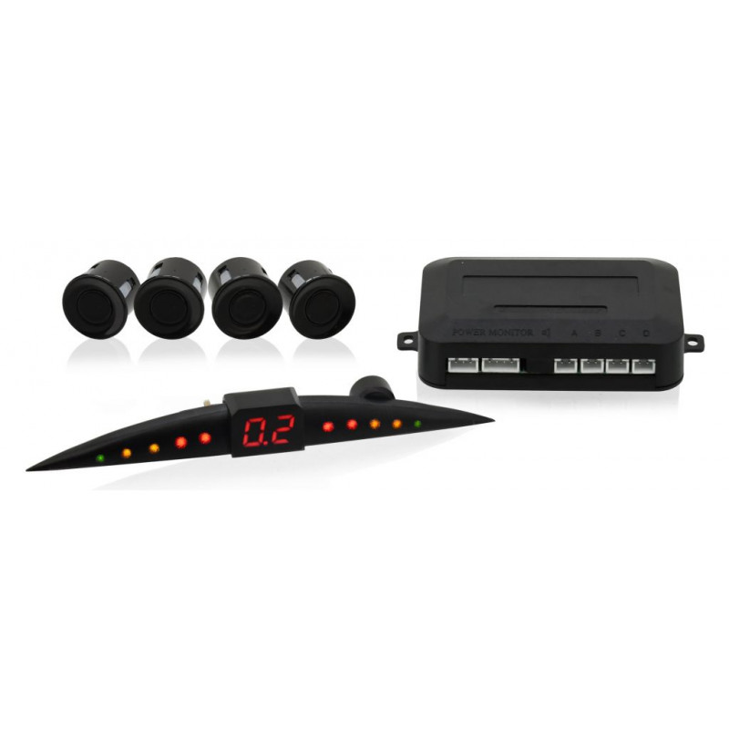 Balenie obsahuje: displej, riadiacu jednotku, 4 senzory pre montáž do zadného nárazníka, zodpovedajúcu kabeláž a vrták zodpovedajúceho priemeru.