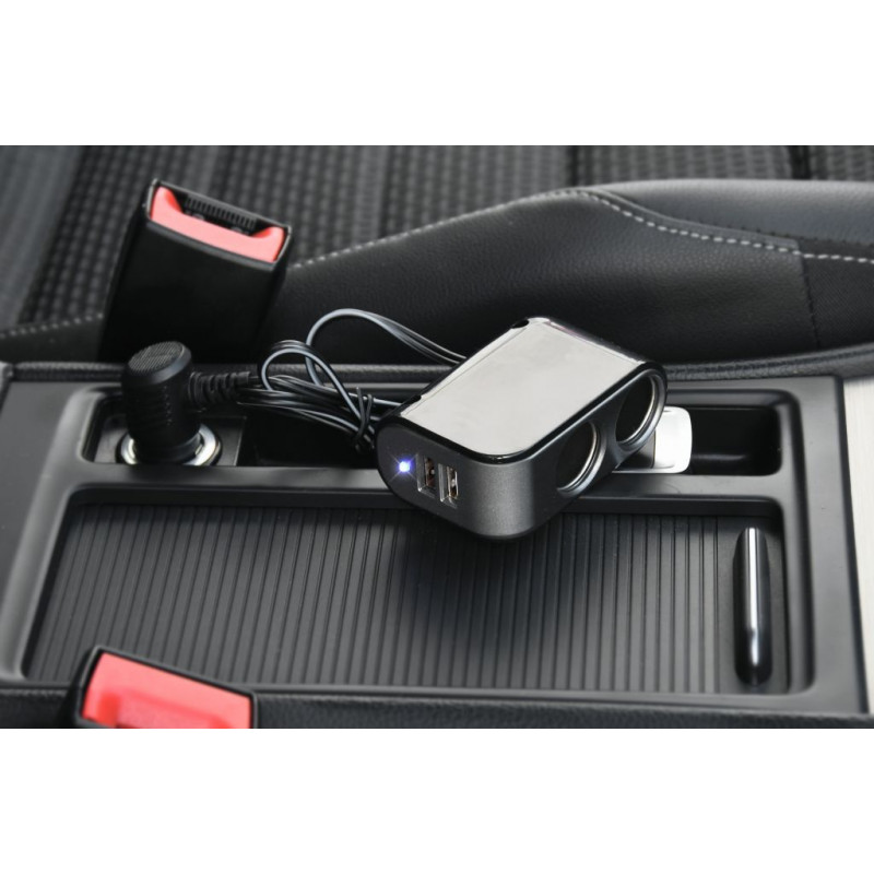 Navyše je adaptér opatrený 2x USB zástrčkami vhodnými pre MP3 prehrávače, mobilné telefóny a ďalšie zariadenia, ktoré sa nabíjajú či napájajú bežným USB zdrojom 5 V až do príkonu 2100 mA. V sade sa nachádza aj samolepiaca podložka na upevnenie zariadenia na ľubovoľnom mieste.