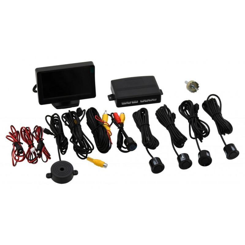 Parkovací asistent s kamerou a LCD displejom na presné a komfortné vizuálne zobrazenie vzdialenosti od prekážky. Funguje na princípe ultrazvukových vĺn prenesených pomocou senzorov v zadnom nárazníku a snímaním priestoru za vozidlom pomocou kamery. Aktivuje sa zaradením spiatočky. Podľa informácií na displeji a pípaní zvukového signálu je vodič informovaný o vzdialenosti od prekážky. Balenie obsahuje LCD displej, riadiacu jednotku, zvukový modul, kameru a 4 senzory pre montáž do zadného nárazníka, zodpovedajúcu kabeláž a vrtáky zodpovedajúcich priemerov. LCD displej (NTSC/PAL) s uhlopriečkou 4,3" je napájaný z riadiacej jednotky parkovacieho asistenta.