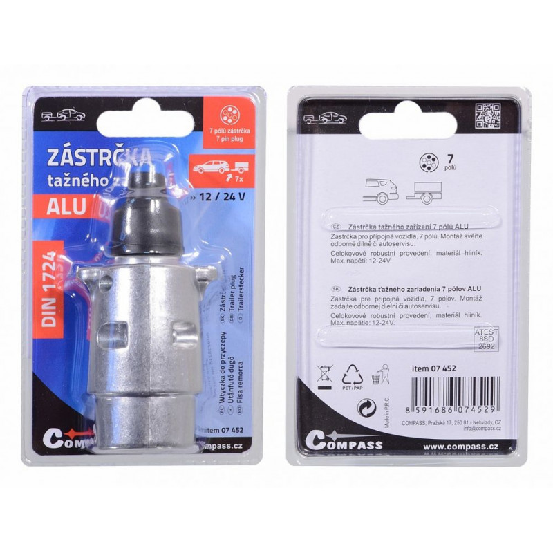 Celokovová ALU zástrčka pre prípojné vozidlá, podľa normy DIN 1724, 7 pólov.