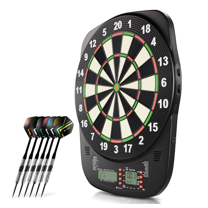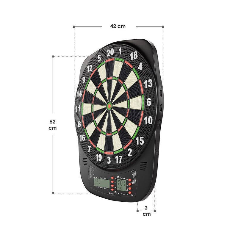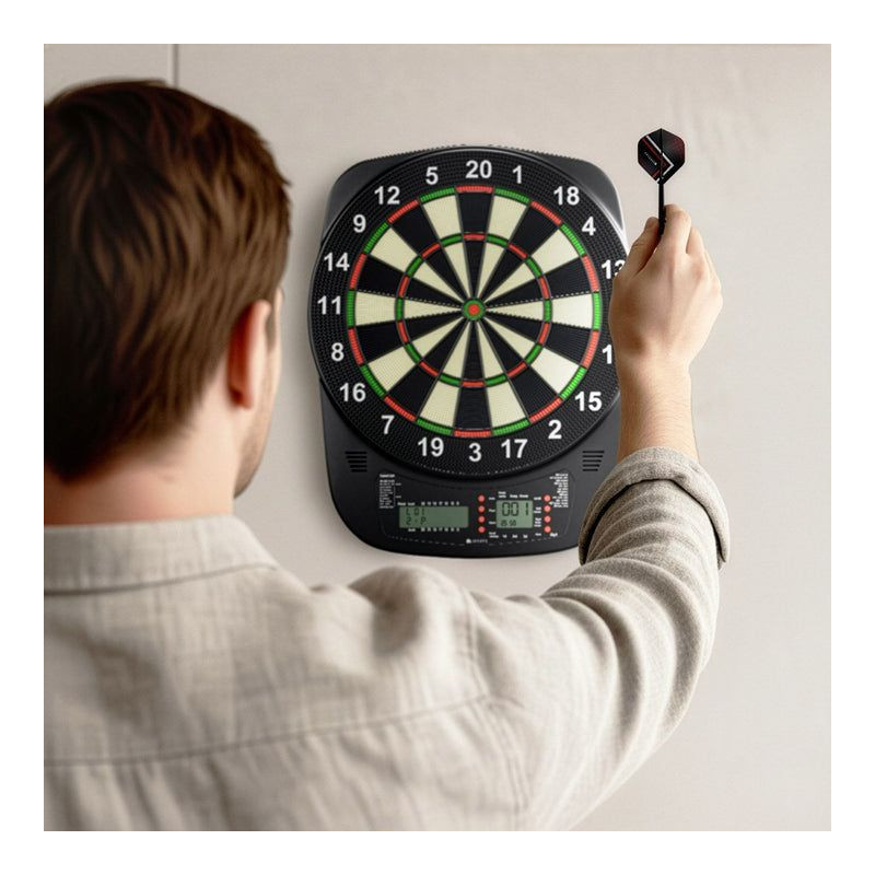 Zažite vzrušenie a zábavu priamo vo vašej obývačke s elektronickou šípkovou terčou. Turnajová atmosféra, množstvo herných variácií a možnosť hrať až s ôsmimi ľuďmi robia z tejto šípkovej terče stredobod každého večera s rodinou alebo priateľmi. LCD displeje a rôzne herné režimy poskytujú súťažný zážitok a motiváciu k trénovaniu.
