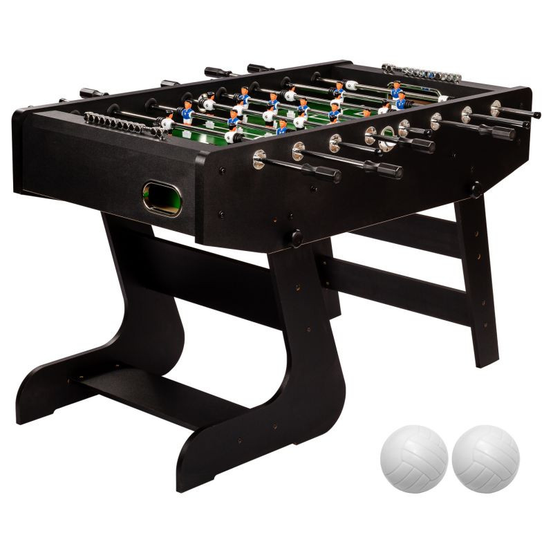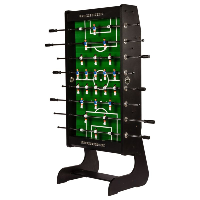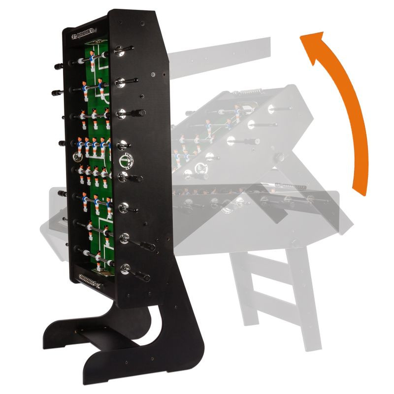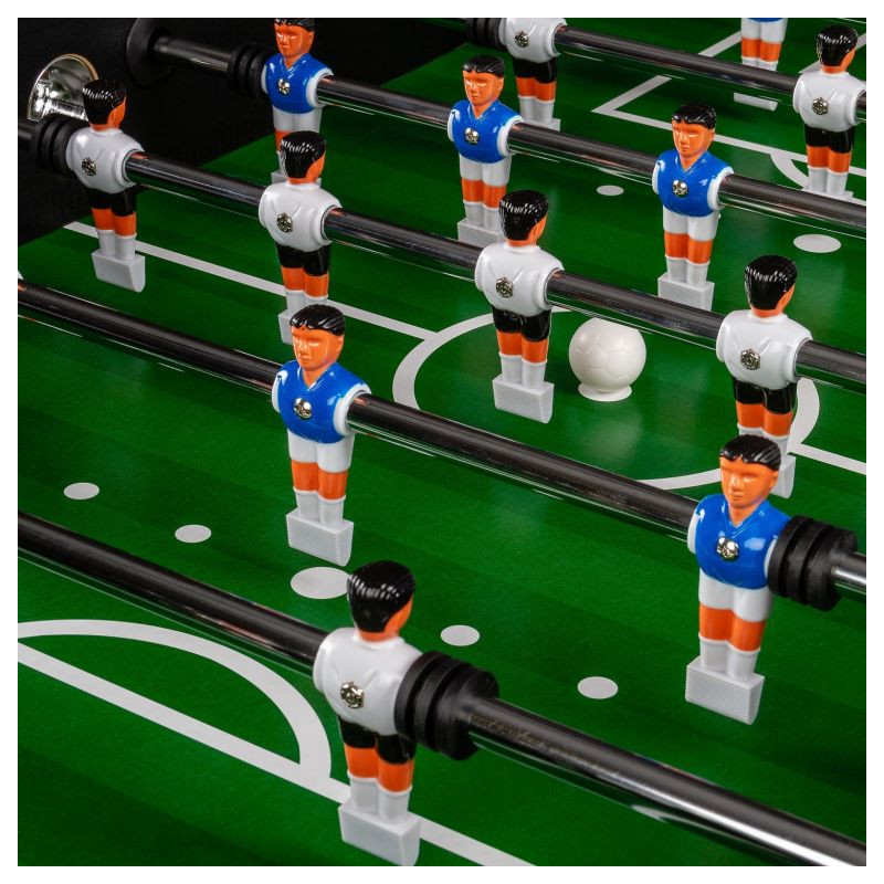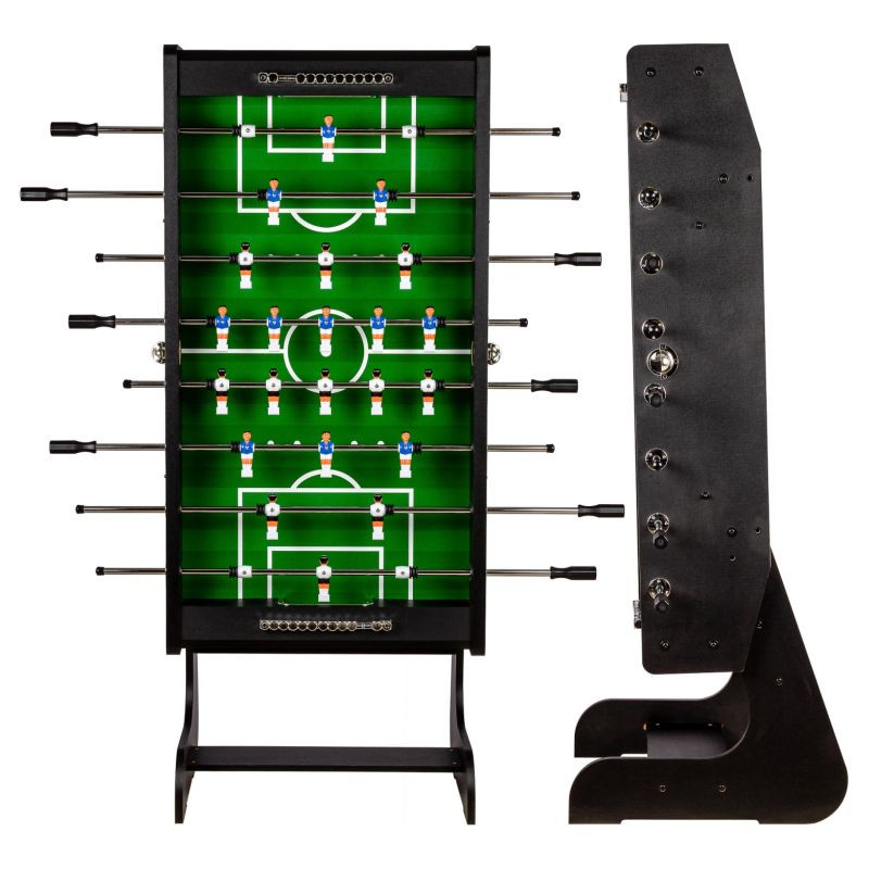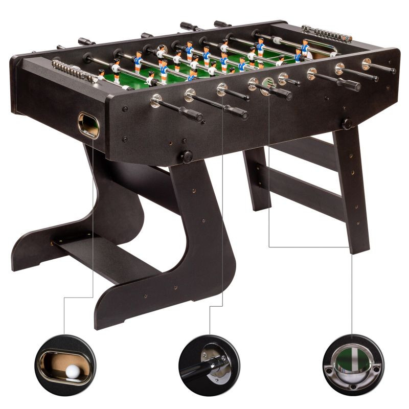 ⚽ Hlavným rysom stolného futbalu je skladací mechanizmus, pomocou ktorého ho môžete úsporne uložiť prakticky všade. Špeciálnu stabilitu zaisťujú stabilizačné tyče pod hracím poľom a krížové výstuhy na nohách. Vďaka kvalitným protišmykovým a ergonomicky tvarovaným držadlám je ovládanie loptičky hračka. Zdvihnuté rohy zaistia jej hladký priebeh, aby Vám nikdy neuviazla v rohoch. Figúrky sú skrutkované a maľované vo farbách modrá/biela a čierna/biela. Vďaka montážnym pokynom je futbalový stôl ľahko a rýchlo postavený a pripravený k hre.
