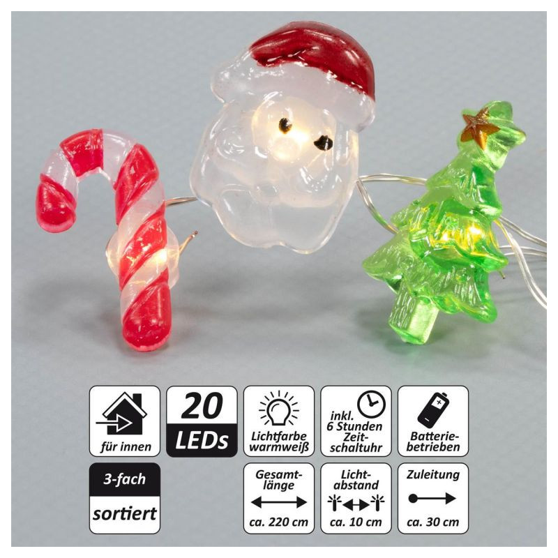 Nastavte si vlastné svetelné akcenty po celý rok a vyzdobte si dom, zimnú záhradu alebo spoločenskú miestnosť. Fantázii sa medze nekladú. Praktická funkcia klipu umožňuje pripevniť dekorácie v každom puzdre zvlášť. Pomocou časovača môžete rozhodnúť, kedy chcete osvetlenie zapnúť. Voľne voliteľná funkcia časovača alebo nepretržitého svietenia. Tieto atmosférické drôtené dekorácie sa skladajú z 20 teplých bielych LED diód, ktoré vytvárajú jedinečnú atmosféru. Vďaka prevádzke na batérie ste nezávislí na zásuvkách a môžete svetelnú reťaz umiestniť kamkoľvek v miestnosti.