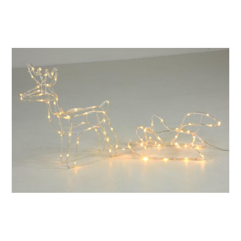Svietiaci vianočný sob pre milovníkov originálnych dekorácií. Rozsvietený sob Vám krásne rozžiari interiér, môžete ho ale umiestniť aj na terasu alebo záhradu. Sob aj sane sú potiahnuté svetelným káblom s teplými bielymi LED diódami.