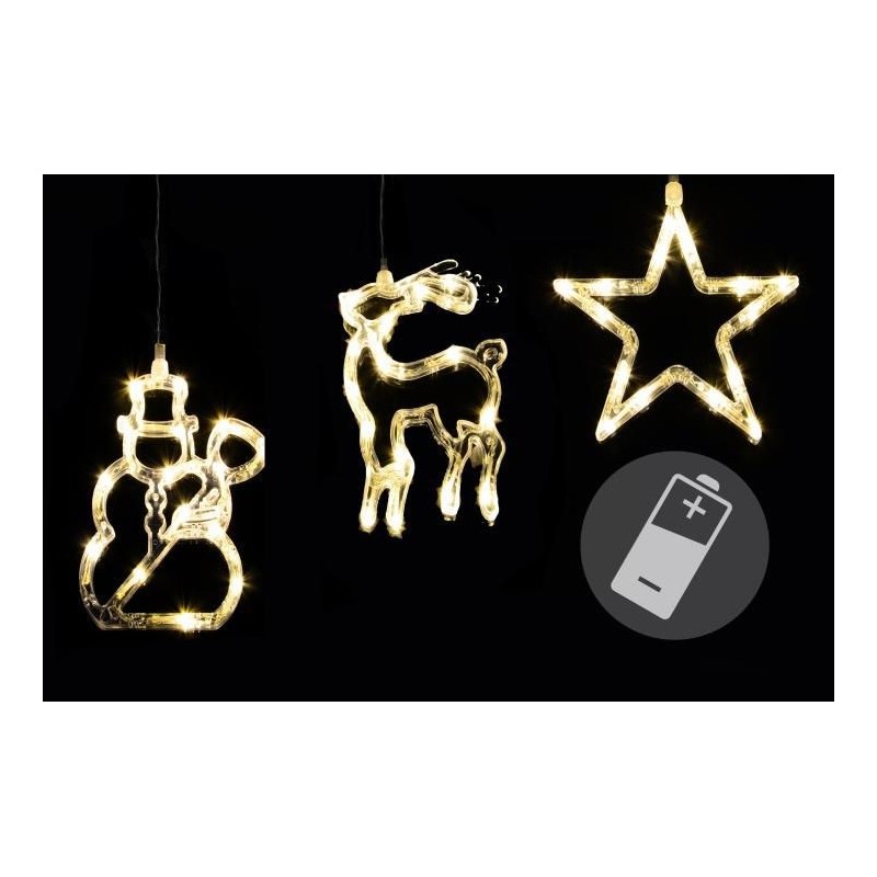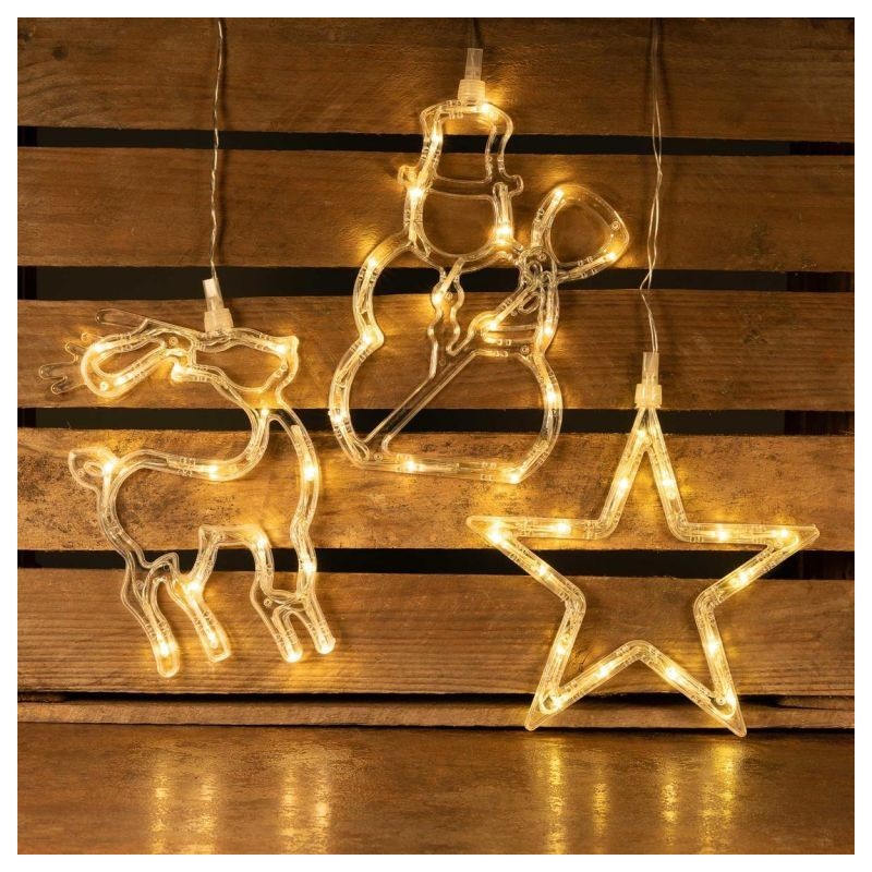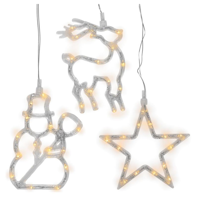 Tieto 3 obrázky na okno skvele podčiarknu slávnostnú a romantickú atmosféru počas vianočných sviatkov. Absolútny pútač v období Vianoc. Povrch je potiahnutý materiálom, ktorý pripomína mráz. Figúrky sú vybavené bielymi diódami a na okno ich môžete uchytiť pomocou prísaviek. Úspora energie - LED - môžete ušetriť až 90 % elektrickej energie v porovnaní s tradičnými žiarovkami.