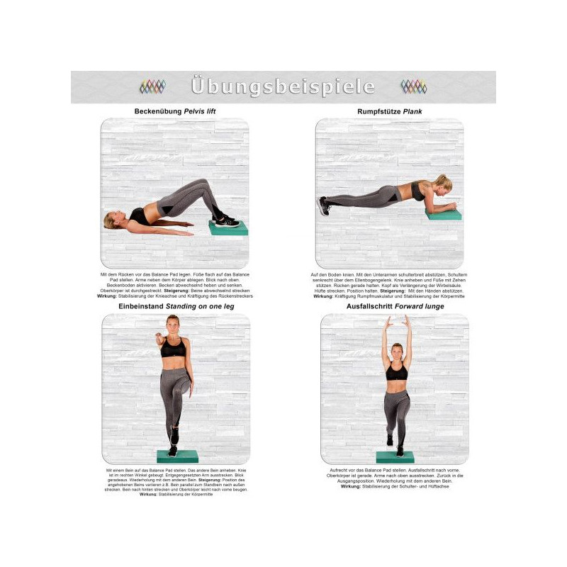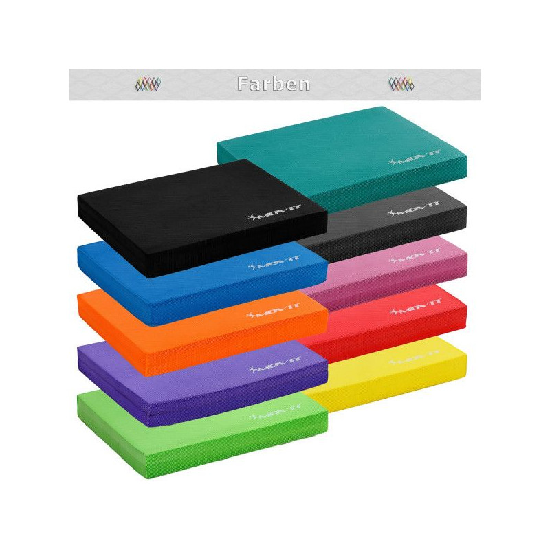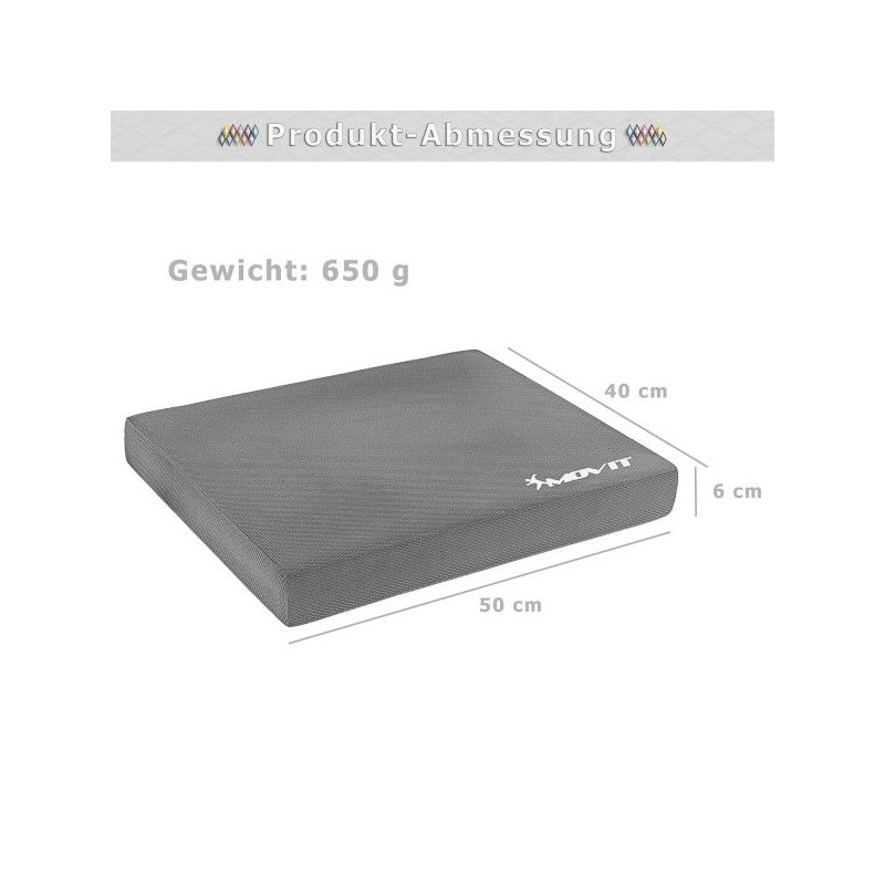 Koordinačná podložka MOVIT, balančný vankúš, vratký vankúš pre koordináciu a posilňovanie, ktorý je šetrný ku kĺbom. Mäkká, nestabilná základňa je vyrobená z peny a pri pôsobení tlaku sa podá. To kladie nároky na celé telo, napr. s nohami na podložke musí celé telo neustále vyrovnávať nestabilný povrch, aby bola dodržaná rovnováha. Balančné vankúše sa veľmi často používajú pri rehabilitácii k obnove svalov po nehode alebo operácii. Cvičenie na nestabilnom povrchu kladie nároky na pocit rovnováhy a zlepšuje koordináciu. Vďaka neustálemu balansovaniu sú využité hlboko uložené svaly, čo pomáha predchádzať zraneniam pri posilňovaní podporných svalov. S priloženou fitness páskou vyrobenou z vysoko kvalitného latexu môžete cvičiť mnoho ďalších cvičení: pilates, drepy, výpady, mosty, výkopy atď. Tým trénujete Vaše sedacie svalstvo, stehná, nohy a brušné svaly spôsobom, ktorý je obzvlášť šetrný ku kĺbom. Silový tréning bol včera - funkčný tréning je dnes! Zlepšite svoju koordináciu, motoriku, kondíciu a silu pomocou tejto inovatívnej tréningovej metódy. Trénujte celistvé pohyby a precvičte hlboké svalové reťazce pomocou balansovania na balančnej podložke MOVIT.