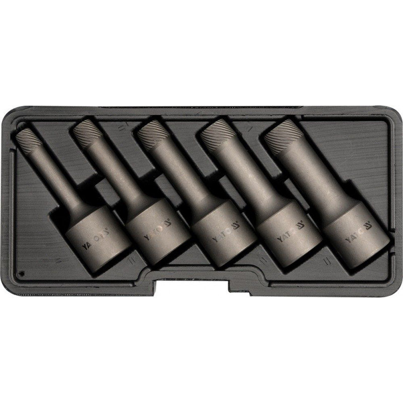 Súprava na demontáž závrtných skrutiek. Sada obsahuje 5 ks prípravkov na závrtné skrutky priemerov 8; 10; 12; 14; 16 mm. Zhotovenie sady z kvalitnej ocele 8660 s tvrdosťou 49-52 HRC. Sada je prehľadne usporiadaná v plastovom kufríku.