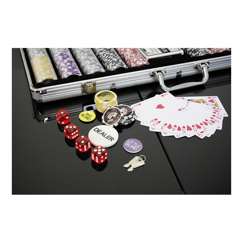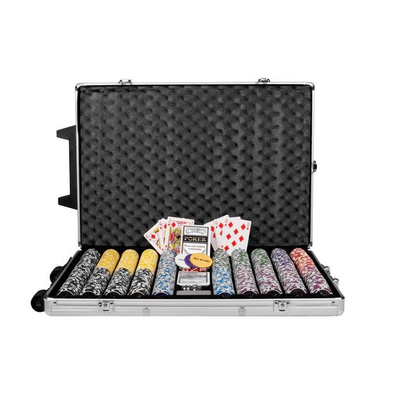 Poker set v praktickej kufríku na kolieskach obsahuje 1000 ks vysoko kvalitných a reflexných laserových žetónov so zaoblenými hranami OCEAN, troje plastové karty, s ktorými je nemožné podvádzať. Tento set bol vytvorený profesionálnymi hráčmi. Kufrík má kolieska pre ľahšiu prepravu.