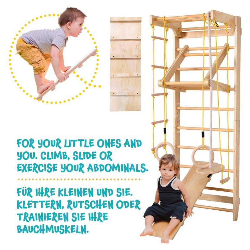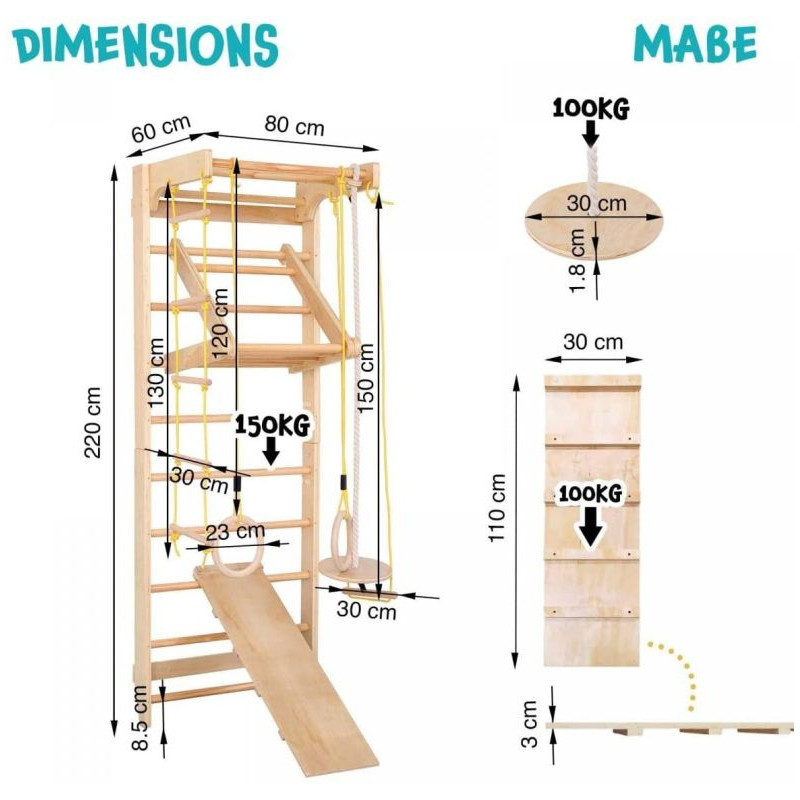 Rebriny s príslušenstvom je cvičebná stanica, ktorá je vhodná pre deti aj dospelých. Sada je vhodná pre deti od 3 rokov a pod stálym dohľadom dospelých. Rebriny sú ideálne na použitie doma, v škole a vo fitness štúdiu. Možno ich dokonca použiť ako pomôcku pri fyzioterapeutických ošetreniach.
