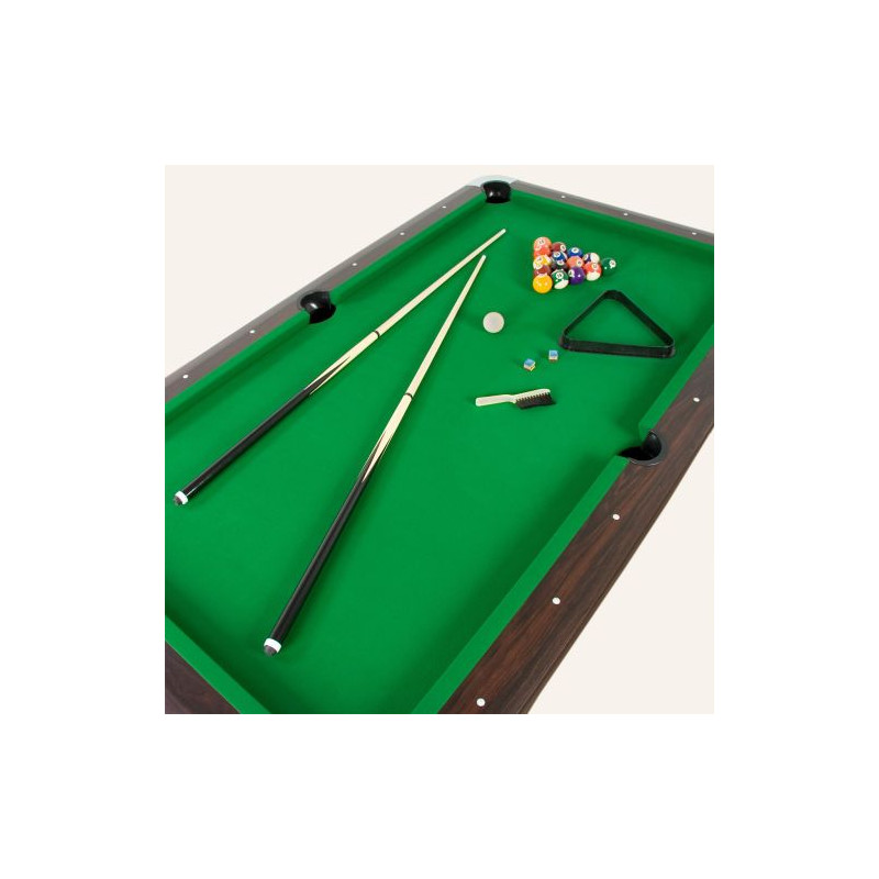 Pozvite svojich známych, priateľov či rodinu na biliardový turnaj k sebe domov. Stôl má výškovo nastaviteľné nohy pre perfektné vyrovnanie stola, centrálne vrátenie gulí a chrómované rohy zabraňujúce prípadnému odreniu. Je dodávaný rozmontovaný, ale balenie obsahuje všetko potrebné na to, aby ste stôl rýchlo zložili a mohli začať hrať. Výhodou tohto stola je jeho ľahká údržba. Súčasťou balenia sú aj kefy na jednoduché odstránenie drobných nečistôt.