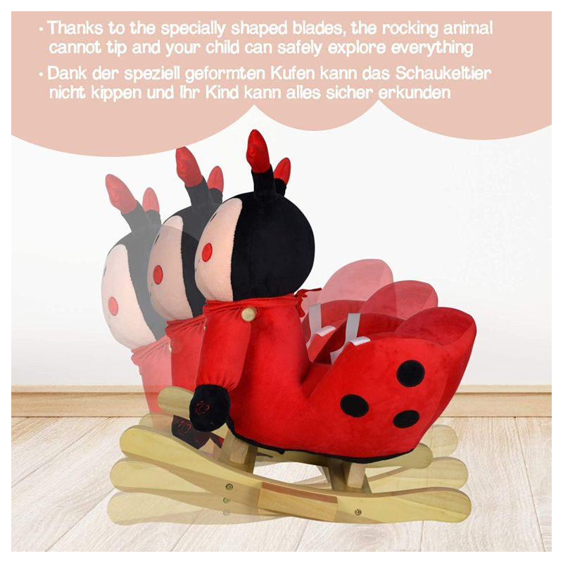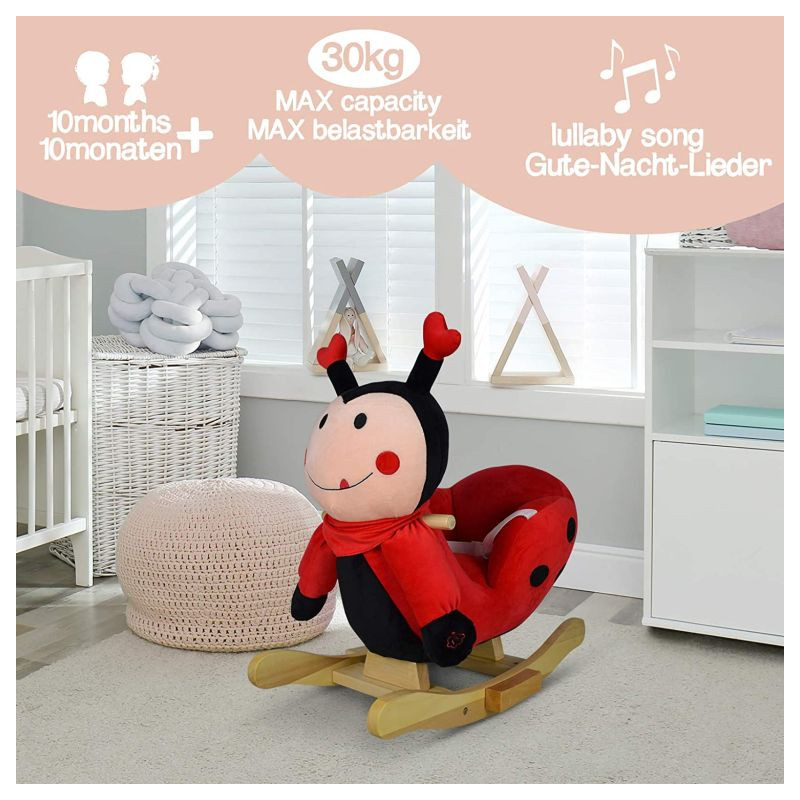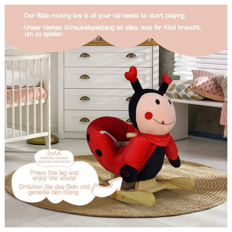 Naša malá hojdacia hračka môže byť dokonalým spoločníkom pre Vaše dieťa a jeho cestou do sveta kreatívnej hry a fantázie. Hojdacia lienka je vybavená nastaviteľným bezpečnostným pásom a má dve praktické držadlá, ktoré udržujú rovnováhu, a opierky nôh, ktoré zaisťujú stabilitu. Trojstranný útulný priestor na sedenie a navyše hudobné funkcie - Vaše dieťa nepotrebuje viac, aby si mohlo začať hrať.