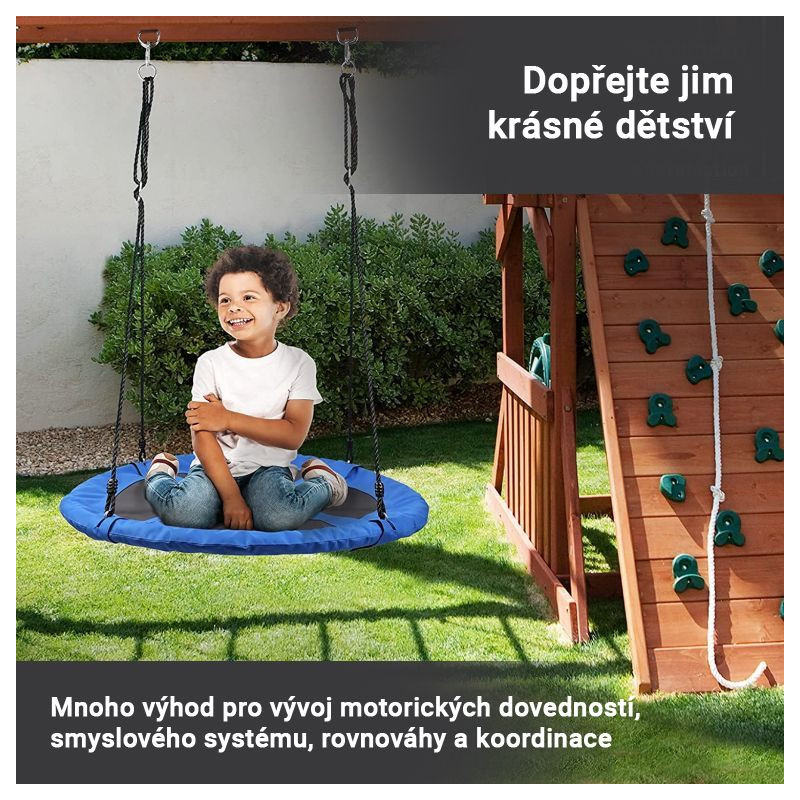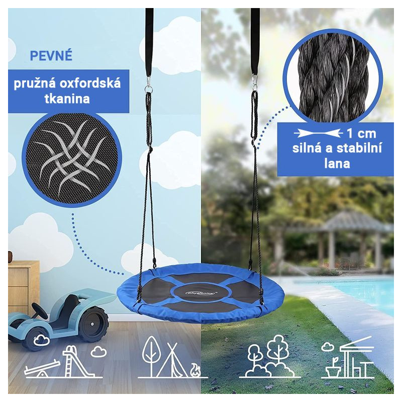 Z hojdačkou Physionics si deti hravou formou zdokonalia svoje motorické zručnosti, priestorové vnímanie a koordináciu. Táto hojdačka je dodávaná zo všetkým príslušenstvom, takže ju môžete okamžite zavesiť na vetvu alebo trám a užívať si zábavu. Je vybavená výškovo nastaviteľným lanom, extrémne pevnými popruhmi, čalúneným a skladacím oceľovým rámom a mäkkým sedákom. Hojdačka by sa mala vždy používať pod dohľadom dospelej osoby.