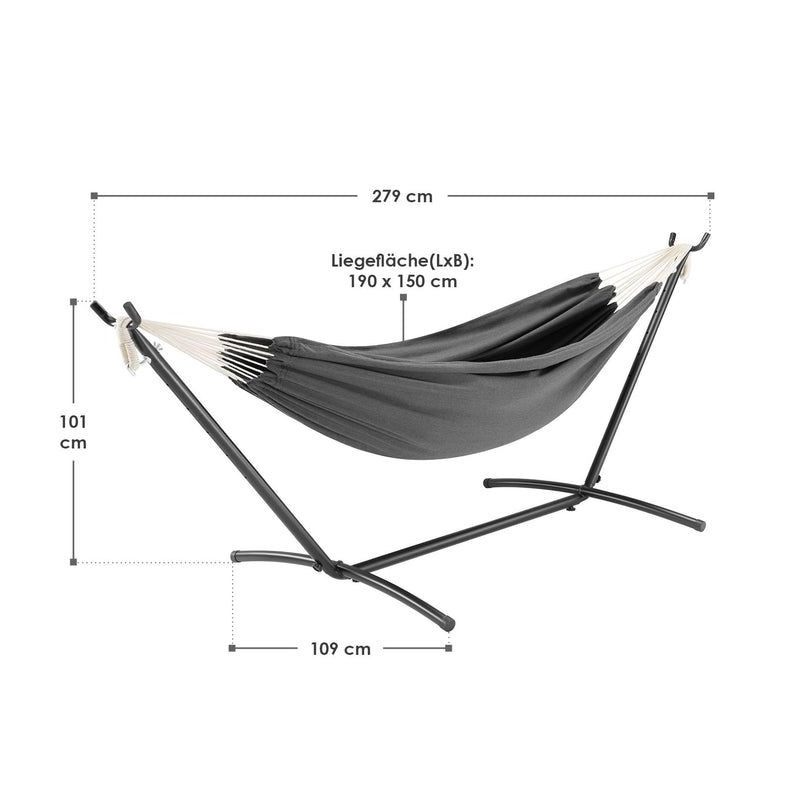 Stabilný oceľový stojan zaisťuje bezpečné použitie kdekoľvek, pevný canvas z bavlny a polyesteru je príjemný na dotyk a odolný voči opotrebovaniu. Montáž zvládnete behom pár minút a údržba je jednoduchá - stačí utrieť vlhkou handričkou. Nosnosť až 200 kg zaručuje pohodlie aj pre dve osoby.
