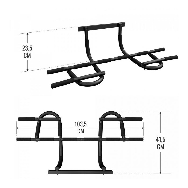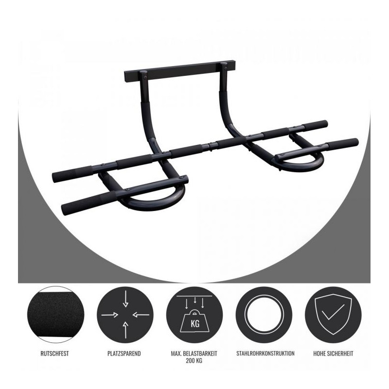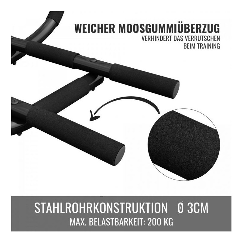 Príťahy boli vždy jedným z najefektívnejších cvičení s vlastnou váhou: Zabezpečujú široký chrbát a precvičujú aj bicepsy. Multifunkčná sťahovacia tyč od Gorilla Sports pozostáva zo stabilnej rúrkovej oceľovej konštrukcie s priemerom 3 cm a umožňuje 10 rôznych možností uchopenia. Mäkký poťah z penovej gumy poskytuje bezpečné držanie a zaručuje optimálne pohodlie.
