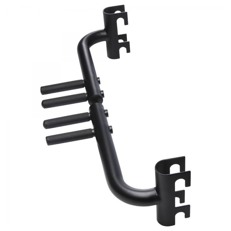 S nástavcom pre multifunkčnú vežu Gorilla Sports získate nástavec, ktorý môžete použiť na rozšírenie vášho multifunkčného stroja Smith. To umožňuje cielený rozvoj osvalenia veľkého prsného svalu, tricepsu, predného deltového svalu a uzlového svalu. Ako podporné svaly sú posilňované extenzory rúk a prstov. Pri tréningu sa podopierate pažami, zatiaľ čo kontrolovane spúšťate telo a potom sa pomaly tlačíte nahor. Posilníte tak svoj triceps, ktorý sa významne podieľa na vzhľade paží. Dbajte na to, aby ste mali ruky mierne pokrčené a chrbát v mierne prehnutej polohe chrbta, aby ste chránili svoje kĺby a medzistavcové platničky. Ak chcete precvičiť prsné svaly, pritiahnite hlavu k hrudi, predkloňte hornú časť tela, natiahnite nohy dozadu a lakte posuňte do strán. Pre silné tricepsy držte hlavu, trup a nohy rovno a zároveň majte zatiahnuté lakte.