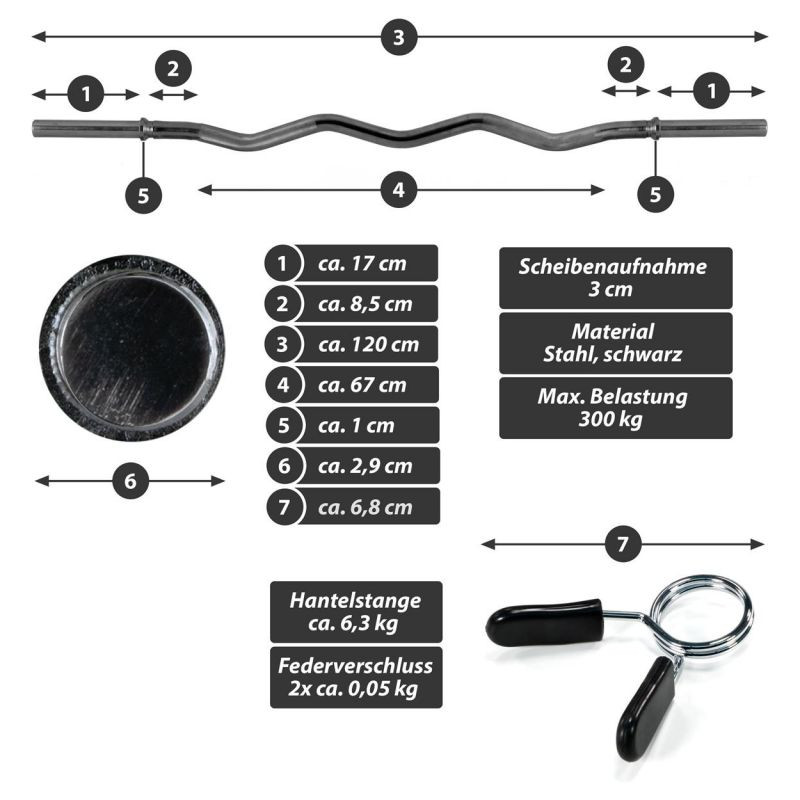 Optimálna činka na použitie v posilňovni aj doma. Zakrivený tvar tyče umožňuje rôzne možnosti úchopu na použitie rôznych partií svalov paží a umožňuje cielene precvičovať konkrétne svalové skupiny i komplexné precvičenie celého tela. Ideálne pre náročný tréning s menšou záťažou zápästia ako s činkou. Vďaka zakrivenému tvaru je obzvlášť vhodná pre efektívny a efektívny tréning paží. Je vhodná pre dostupné záťažové dosky s priemerom otvoru 30 mm. Pružiny, ktoré je možné rýchlo vymeniť, upevňujú závažie bezpečne na tyč činky a zaručujú jednoduchú výmenu závaží.