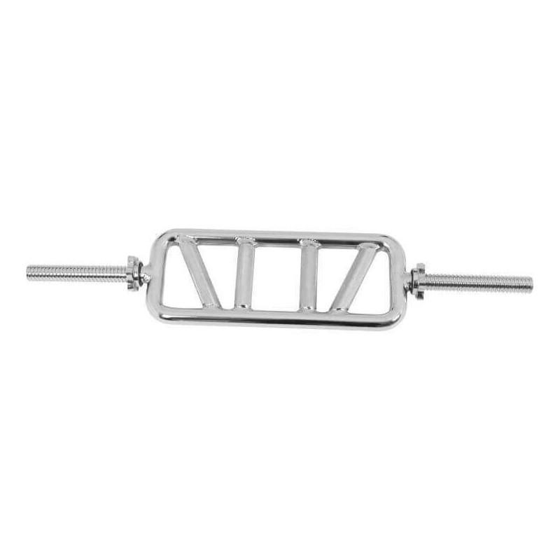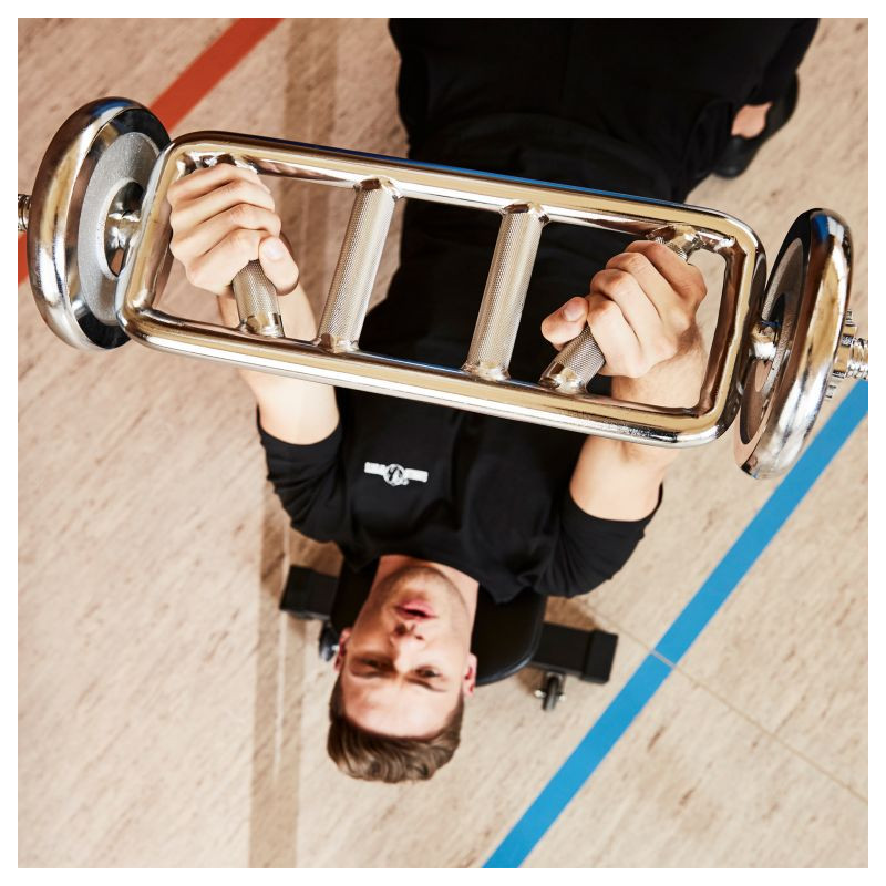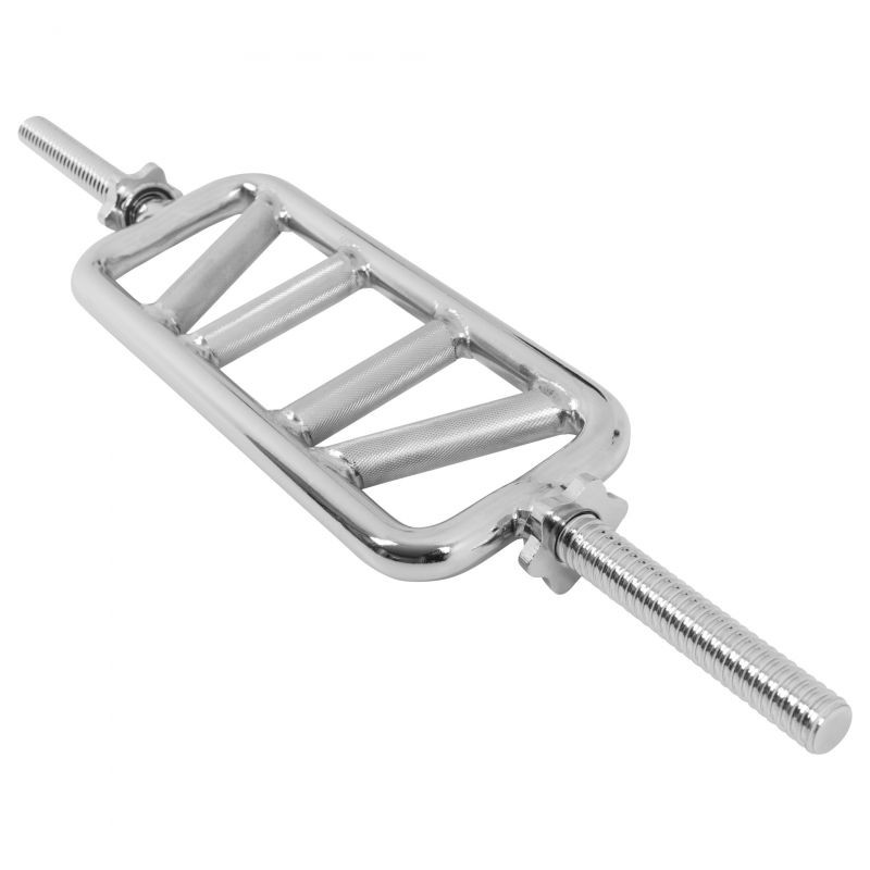 Tricepsový trenažér Diagonal v chróme od Gorilla Sports precvičuje nielen triceps, ale aj biceps. Jeho šikmé rukoväte umožňujú dve varianty úchopu, s ktorými môžete svaly nadlaktia rôzne zaťažovať. S chrómovaným trenažérom na triceps Diagonal od Gorilla Sports si môžete rozšíriť domácu posilňovňu o doplnky štúdiovej kvality, ktoré využijete na efektívne posilňovanie horných paží. Je povrchovo upravená vysoko kvalitným chrómovaním s ryhovanou rukoväťou a označením.