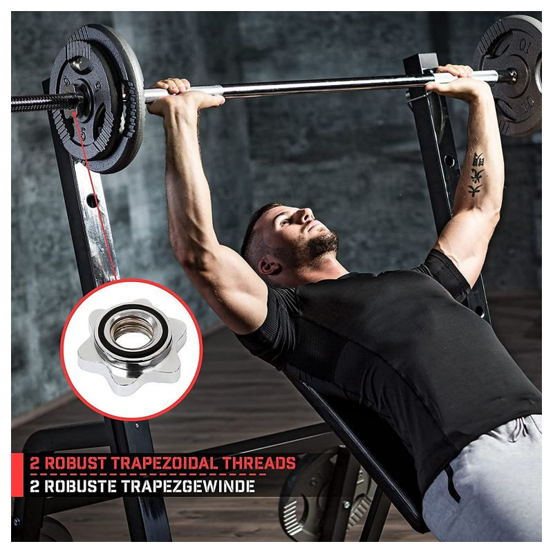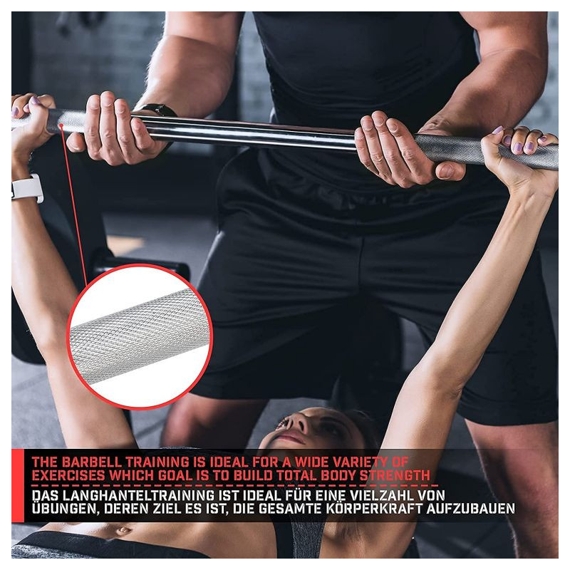 Tyč pre silový tréning umožňuje maximálne zaťaženie 300 kg kotúčov, ktoré sú pevne uzavreté hviezdicovými zámkami. Zdvíhacia tyč je vhodná pre všetky štandardné kotúče 30/31 mm. Dve 20 cm dlhé rukoväte na fitness tyči majú protišmykový povrch, ktorý zaisťuje, že Vám ruky z tyče neskĺznu.