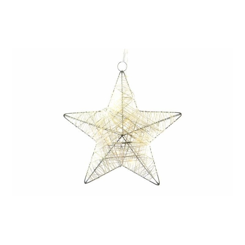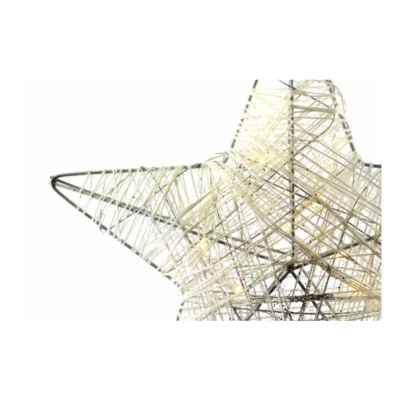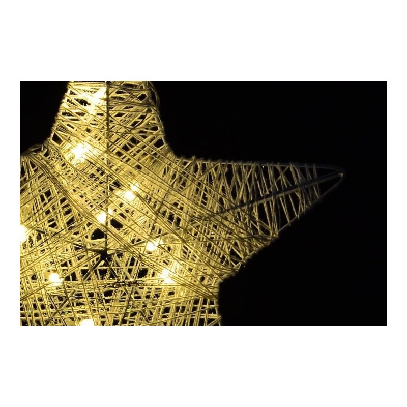 Prekrásna vianočná hviezda ratanového vzhľadu. Hviezda žiari 10 LED diódami teplým bielym svetlom, krásnu atmosféru pomáhajú navodiť aj trblietky, ktorými je hviezda posypaná. Osvetlenie je možné zapnúť či vypnúť spínačom. Hviezda má navrchu očko pre zavesenie na okno či na dvere. Svetelná hviezda je napájaná batériami.