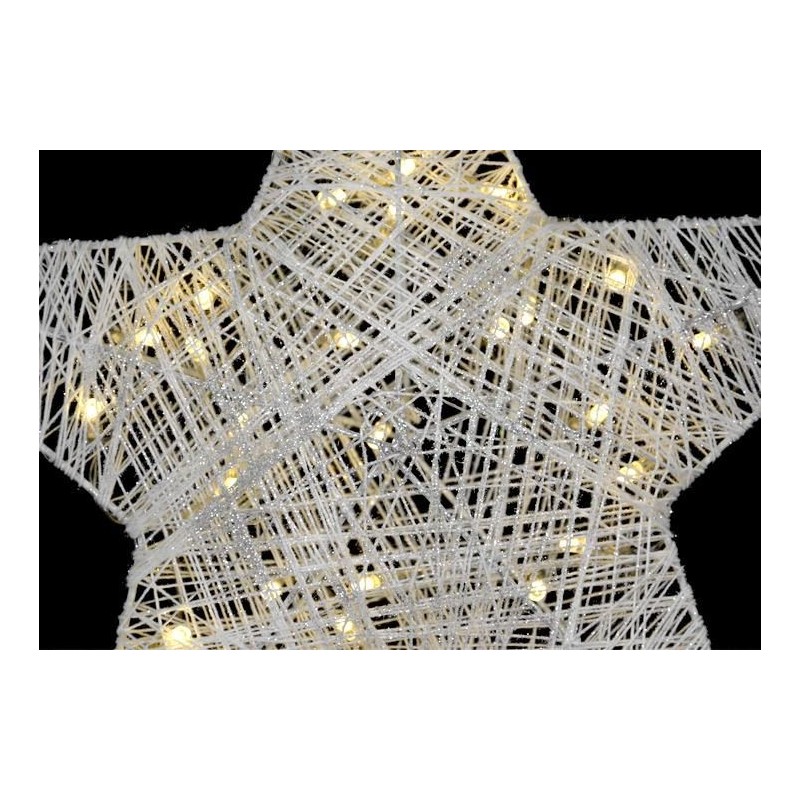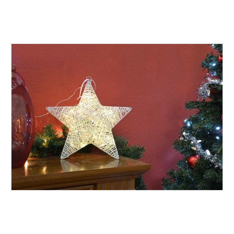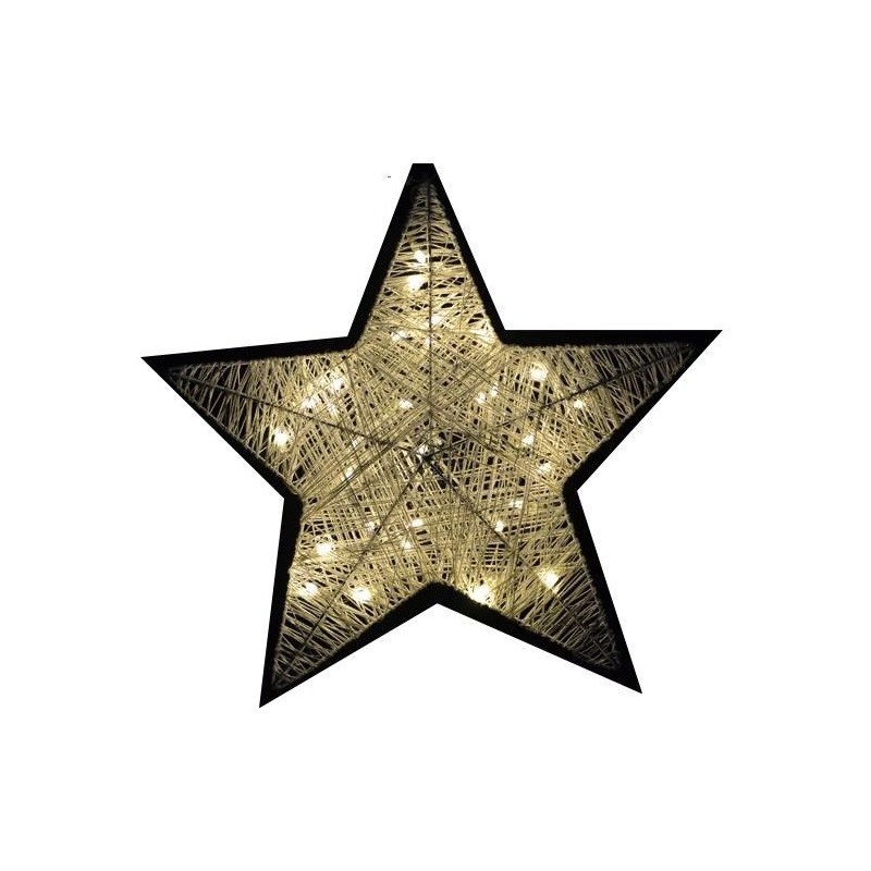 Prekrásna vianočná hviezda ratanového vzhľadu. Hviezda žiari 10 LED diódami teplým bielym svetlom, krásnu atmosféru pomáhajú navodiť aj trblietky, ktorými je hviezda posypaná. Osvetlenie je možné zapnúť či vypnúť spínačom. Hviezda má navrchu očko pre zavesenie na okno či na dvere. Svetelná hviezda je napájaná batériami.