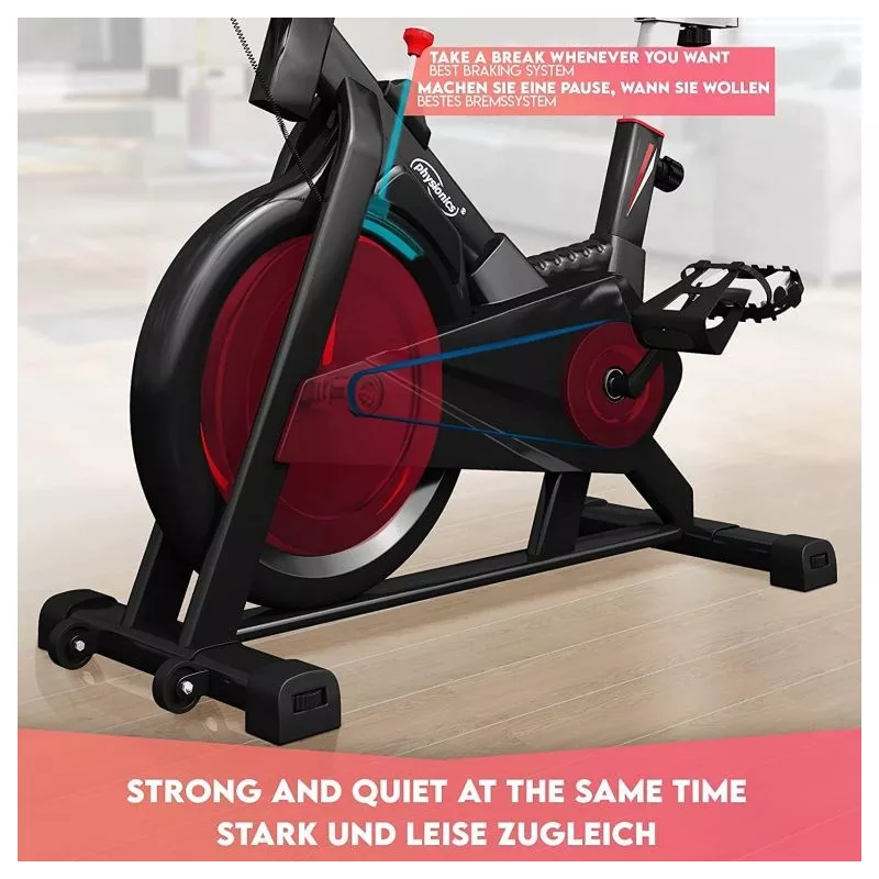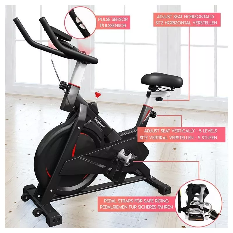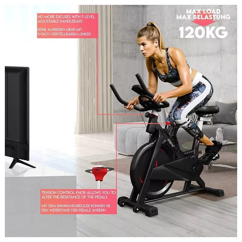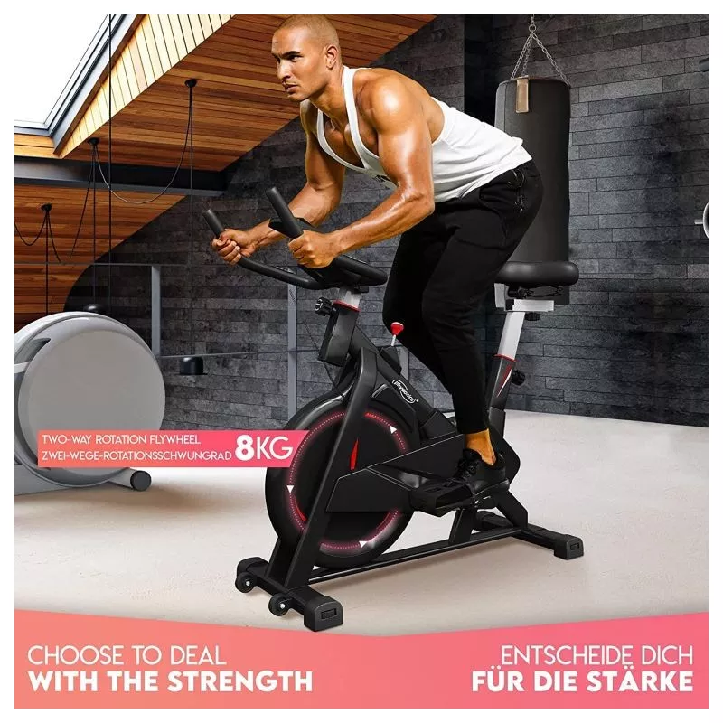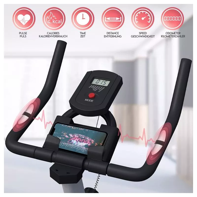 Zdravý životný štýl je vďaka nášmu stacionárnemu rotopedu oveľa jednoduchší. Tento rychlostný trenažér zlepšuje fyzickú vytrvalosť, spevňuje svaly a zlepšuje celkovú pohodu. Rotoped je ideálny pomocník, nielen pre športovcov s praktickým držiakom na fľašu a popruhmy na pedále pre bezpečný tréning. LCD displej cyklistického bicykla zobrazuje čas, rýchlosť, vzdialenosť, spálené kalórie, pulz a má aj počítadlo kilometrov; batérie nie sú súčasťou balenia. Cyklotrenažér poskytuje efektívny vytrvalostný tréning pre užívateľov s maximálnou hmotnosťou do 120 kg a 8 kg zotrvačník, ktorý je obojstranne otočiteľný. Snímač tepu je umiestnený na riadidlách.