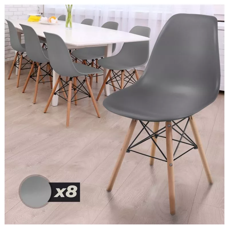 Nábytok v škandinávskom štýle je už dlhšiu dobu trendom moderného domova i komerčných zariadení. Naše vintage jedálenská stolička upúta pozornosť a vnesie do Vášho domova jednoduchú eleganciu. Plastové sedadlo tulipánového tvaru ponúka ergonomickú oporu a ľahko sa čistí. Stabilné operadlo a tvarované sedadlo zaisťujú pohodlie pri sedení. Stabilitu jedálenských stoličiek zaisťujú robustné nohy z bukového dreva a starostlivo skonštruovaný kov. Sú dokonalými výstavnými kúskami pre každú miestnosť v dome. Môžu byť aj súčasťou baru, reštaurácie alebo kaviarne.