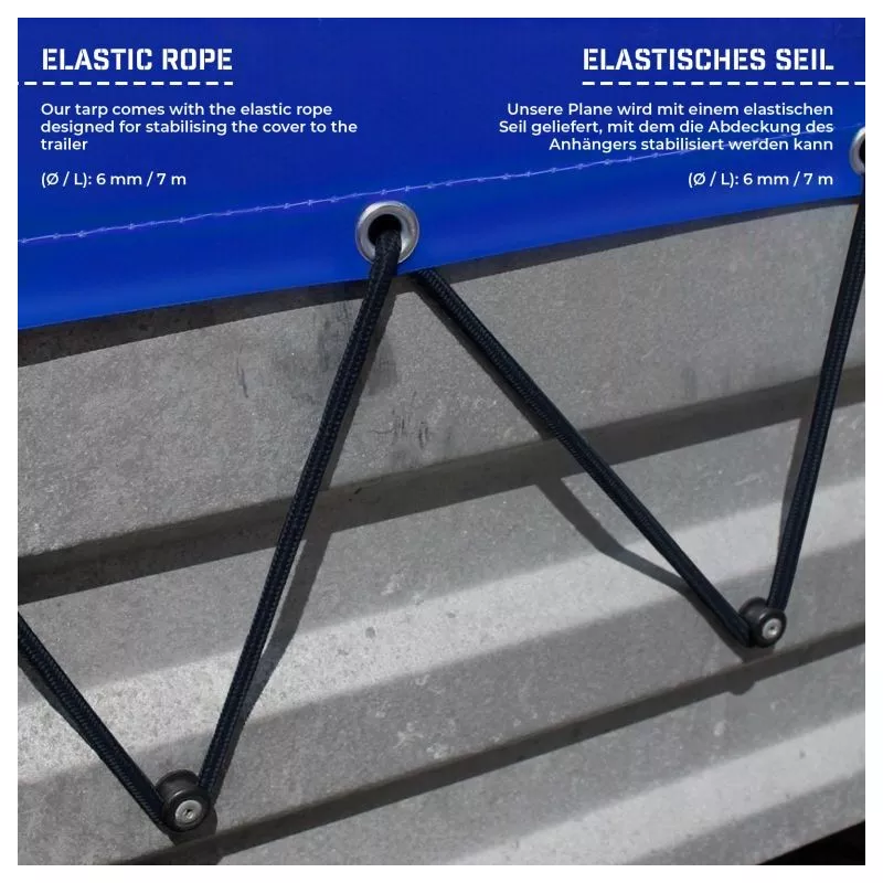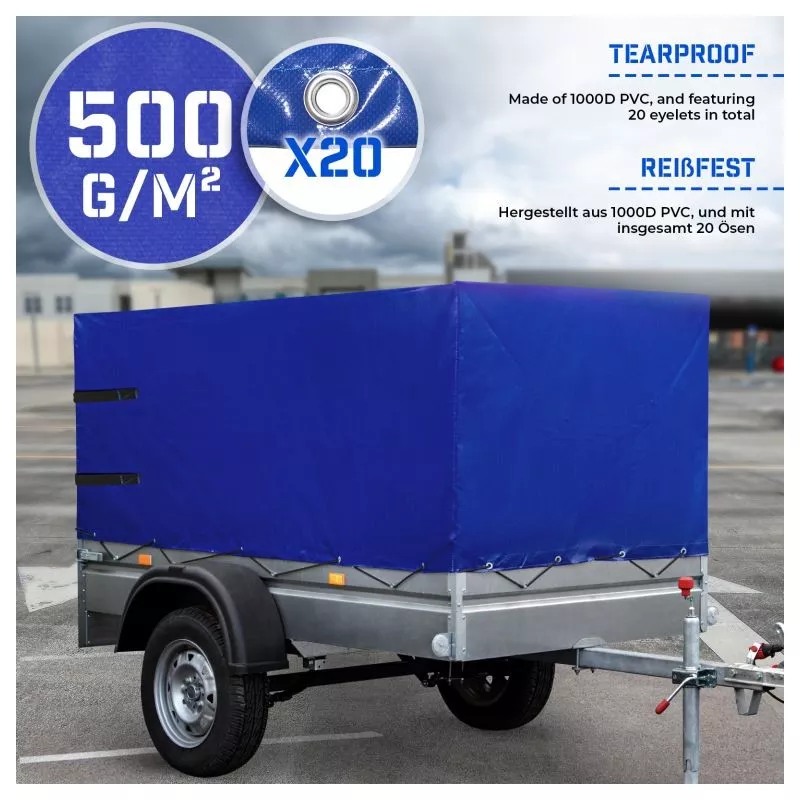 Chráňte svoj náklad počas prepravy pomocou našej plachty na príves. Je to príslušenstvo, ktoré každý majiteľ prívesu potrebuje k ochrane nákladu pred všetkými elementmi a možnými poruchami počas prepravy. Každá strana bola vystužená 12 mm hliníkovými očkami, takže môžete plachtu pripevniť k prívesu pomocou elastického lana. Zadná časť krytu má štyri upevňovacie pásiky, ktoré zabezpečia náklad a umožňujú ľahký prístup pre naloženie a vyloženie.