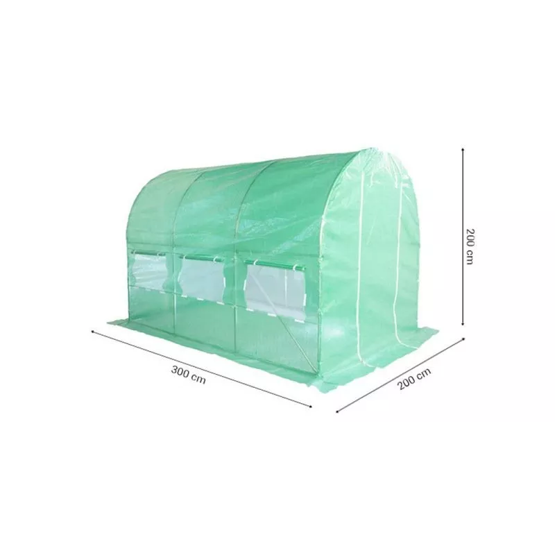 Fóliovník má široký vchod s dvomi zipsami - dvere je možné zrolovať a upevniť hore. Fóliovník je vybavený aj bočnými oknami s moskytiérou, ktoré chránia plodiny proti hmyzu a poskytujú efektívne vetranie. Správna výška fóliovníka zabezpečuje vovnútri slobodu práce a voľný rast rastlín. Všetky prvky konštrukcie sú navzájom prepojené skrutkami, ktoré sú súčasťou balenia. Montážne inštrukcie obsahujú výkres s číslovaním a priradením príslušných častí. Fóliu z foliovníka odporúčame na zimu zložiť.