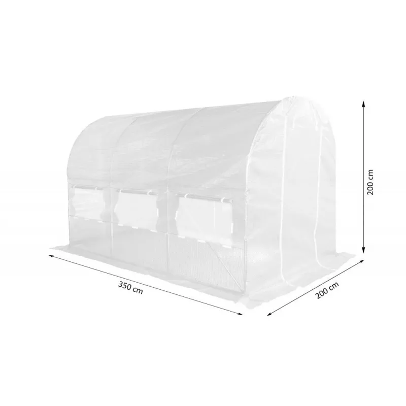 Fóliovník má široký vchod s dvomi zipsami - dvere je možné zrolovať a upevniť navrchu. Fóliovník je tiež vybavený bočnými oknami s moskytiérou, ktorá chráni plodiny pred hmyzom a poskytuje efektívne vetranie. Správna výška fóliovníka zaisťuje vovnútri slobodu práce a voľný rast plodín. Všetky prvky konštrukcie sú navzájom prepojené skrutkami, ktoré sada obsahuje. Montážne inštrukcie zahŕňajú výkres s číslovaním a priradením príslušných častí. Fóliu z foliovníka odporúčame na zimu zložiť.