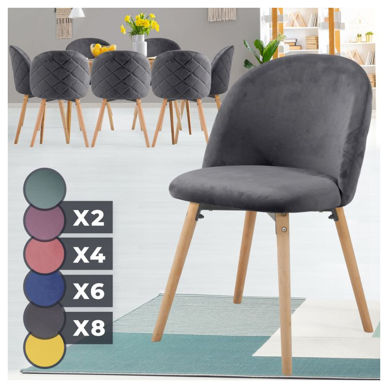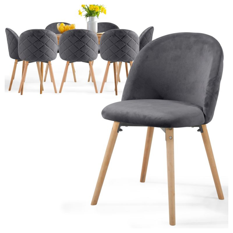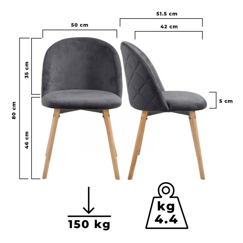 Nábytok v škandinávskom štýle je už nejakú dobu trendom ako v domácnostiach, tak aj v komerčných zariadeniach. Tieto stoličky v modernom dizajne majú nohy z bukového dreva, ktoré zaistia skvelú stabilitu a príjemný zamatový poťah pre to správne posedenie.