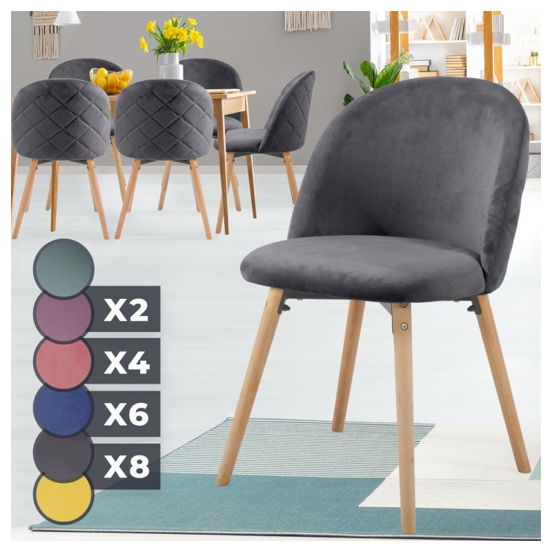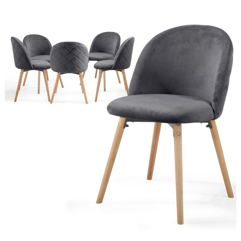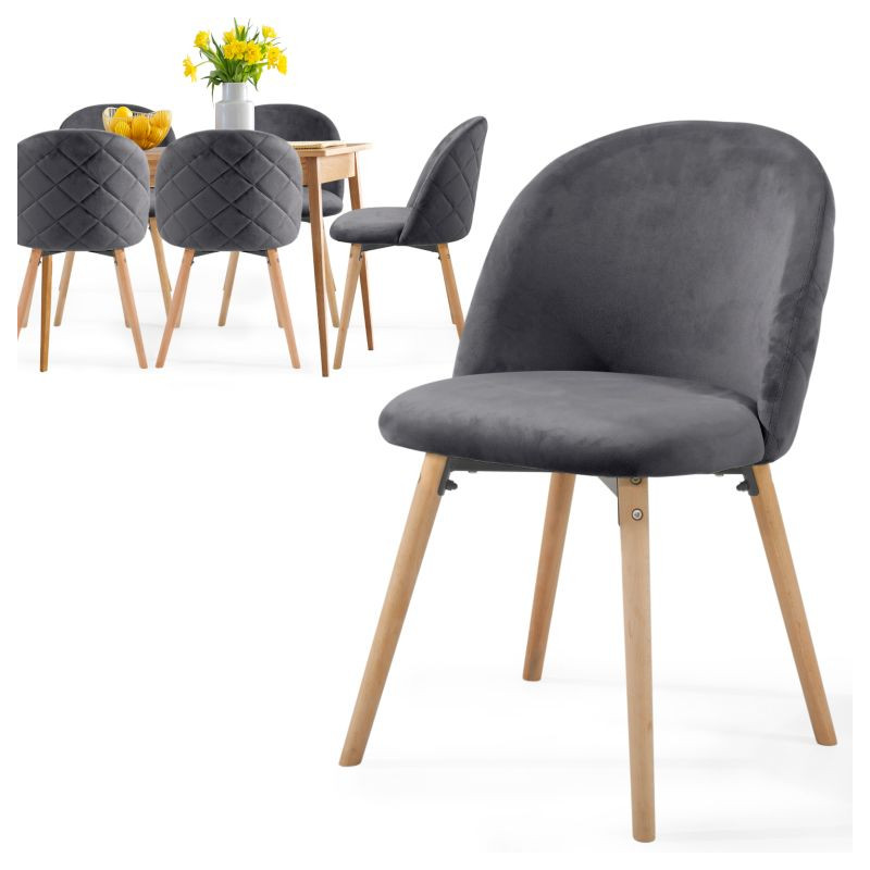 Nábytok v škandinávskom štýle je už nejakú dobu trendom ako v domácnostiach, tak aj v komerčných zariadeniach. Tieto stoličky v modernom dizajne majú nohy z bukového dreva, ktoré zaistia skvelú stabilitu a príjemný zamatový poťah pre to správne posedenie.