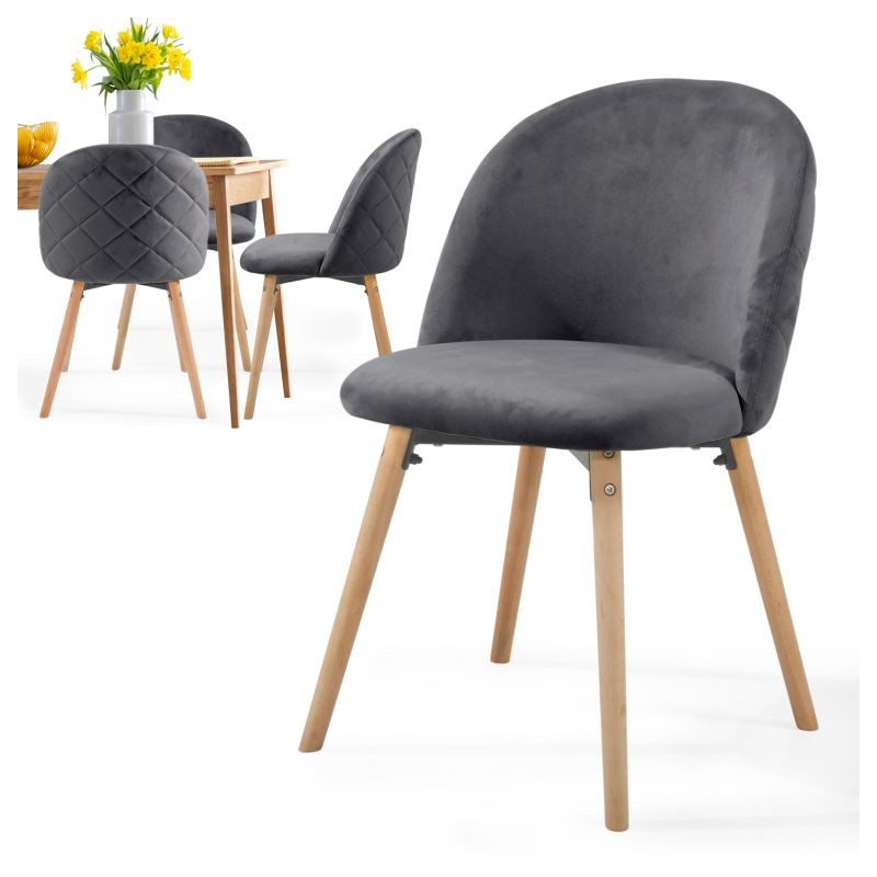 Nábytok v škandinávskom štýle je už nejakú dobu trendom ako v domácnostiach, tak aj v komerčných zariadeniach. Tieto stoličky v modernom dizajne majú nohy z bukového dreva, ktoré zaistia skvelú stabilitu a príjemný zamatový poťah pre to správne posedenie.
